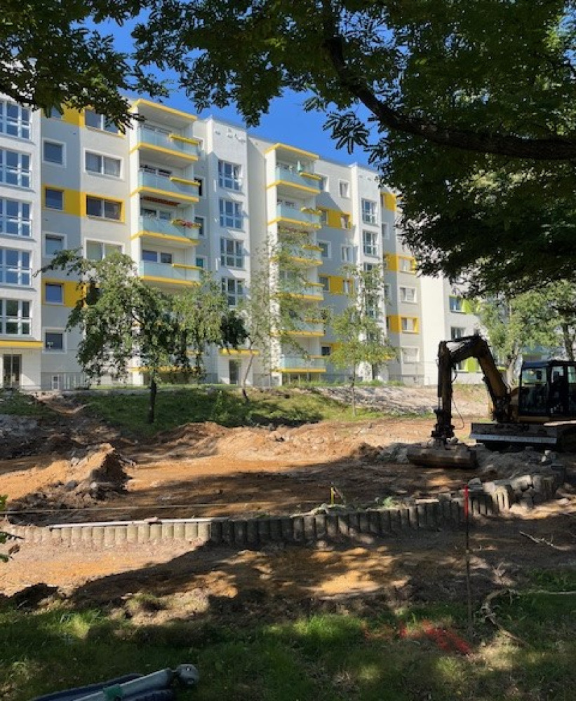 Parallel zum gerade erfolgten Baustart in der Freifläche findet in diesen Quartieren eine komplexe Sanierung der bestehenden Wohnstruktur statt. Einige Gebäude sind bereits bezugsfertig hergestellt, in anderen Teilabschnitten wird fleißig gebaut und geplant.