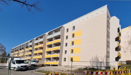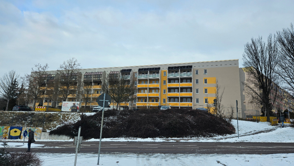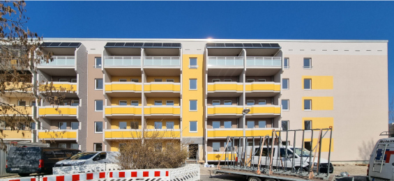 Das Gebäude im Meißner Norden nimmt sichtbar Gestalt an. Der neue Balkonturm ist bereits fertiggestellt und fügt sich stimmig in das Gesamtbild ein. Auch die Photovoltaikanlage ist vollständig montiert – ein wichtiger Baustein für die nachhaltige Ausrichtung des Blocks.