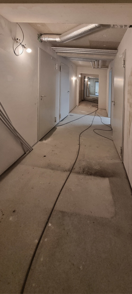 Im Inneren sind die HLS-Installationen komplett eingebaut, und auch der neue Aufzug ist bereits installiert. Der Innenausbau (Maler, Fliesenleger, Bodenlegen, Innentüren) läuft auf Hochtouren, die barrierefreie Eingangsrampe befindet sich in der finalen Ausführung.