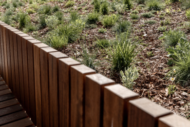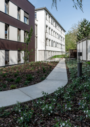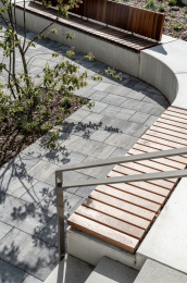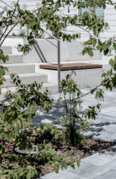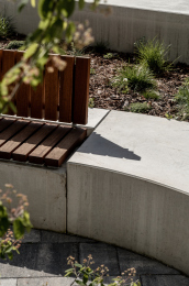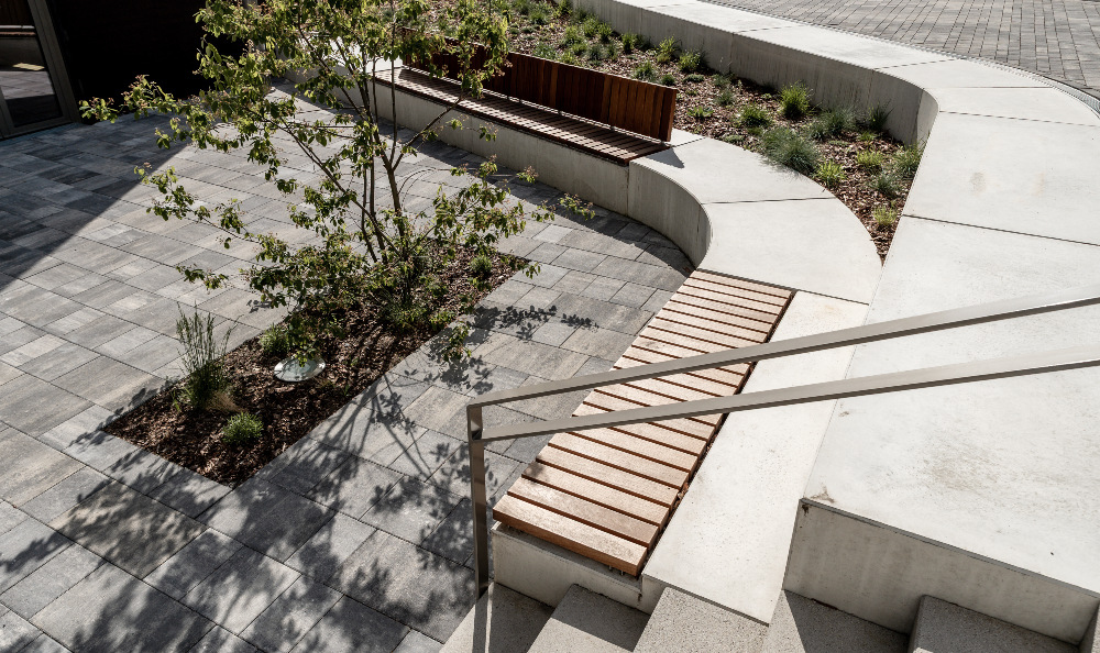 Der Außenbereich verbindet somit Funktionalität mit Ästhetik und hat sowohl einen repräsentativen Charakter als auch attraktive Aufenthaltsqualitäten für die Mitarbeitenden.