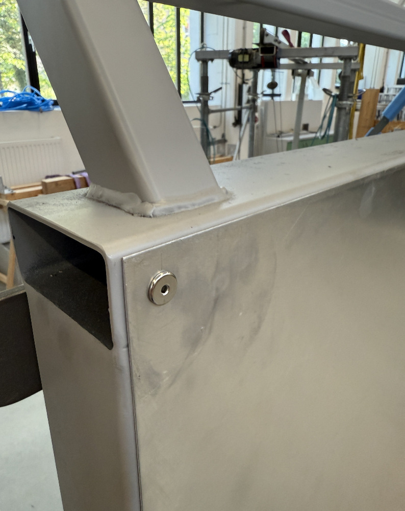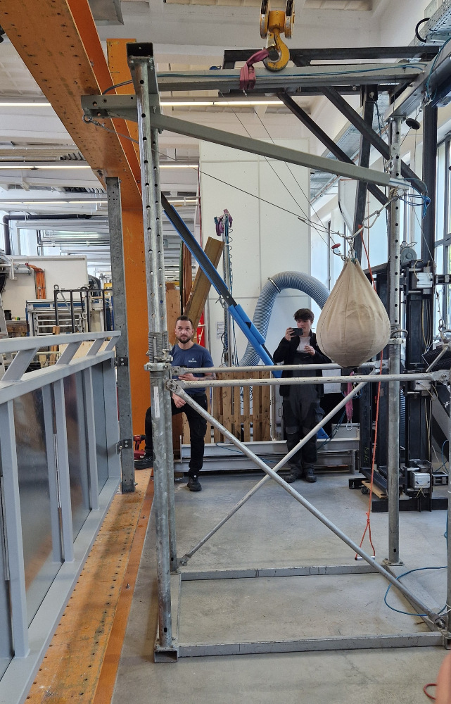 Die Firma Metallbau Hans Walther GmbH stellte dafür verschiedene Prüfanordnungen her, die im Versuch an der TU Dresden auf ihre Belastbarkeit geprüft wurden. Alle Prüfanordnungen haben den Test erfolgreich bestanden.