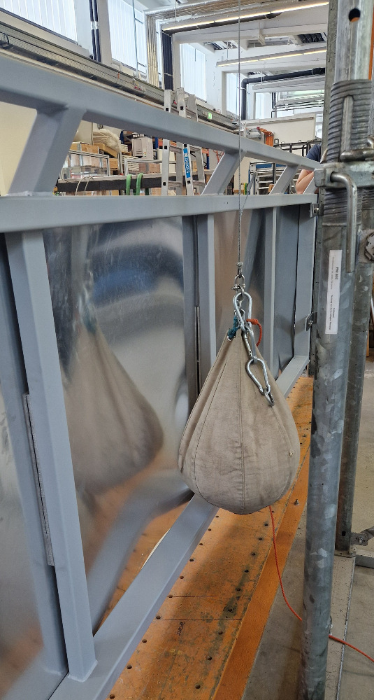 Für das Bauvorhaben Remscheider Straße 22–27 der Städtischen Wohnungsgesellschaft Pirna wurde am 05. Juni 2025 ein entscheidender Schritt zur Umsetzung der geplanten Sanierungsmaßnahmen vollzogen: An der Technischen Universität Dresden führten wir gemeinsam mit der Metallbau Hans Walther GmbH einen Pendelschlagversuch zur Nachweisführung der Balkonbrüstungen durch.