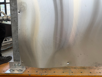 Die bestehenden Brüstungen bestehen aus einer tragenden Stahlrahmenkonstruktion, die mit TRESPA-Platten ausgefacht ist. Im Rahmen der Sanierung sollen diese Brüstungen mit 2 mm starken Aluminiumblechen bzw. Aluminiumlochblechen verkleidet werden. Die Verkleidung wird mittels Blindnieten punktuell auf dem bestehenden Stahlrahmen befestigt.