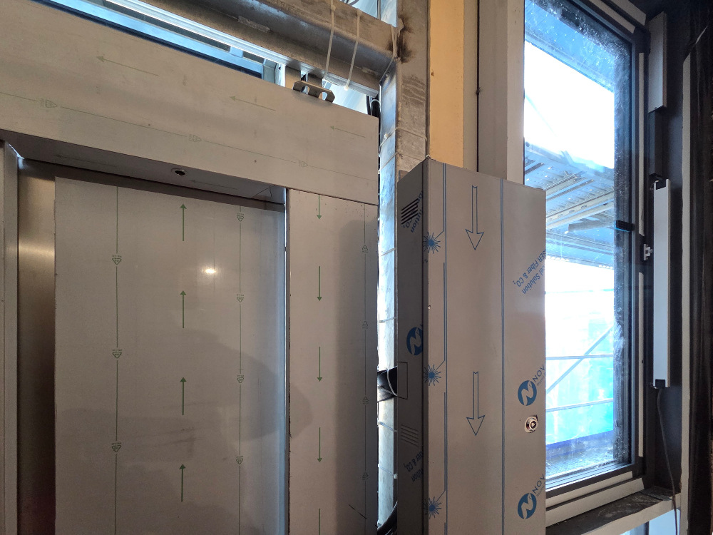 Aktuell laufen die Arbeiten in den Treppenhäusern sowie der Ausbau der Leerwohnungen – teils mit neuen, optimierten Grundrissen. Auch außen tut sich viel: Die vor dem Gebäude angeordneten Aufzugsschächte befinden sich in der Endmontage und wurden sämtlich mit einer Vogelschutzverglasung ausgestattet. Im Januar 2026 folgt dann der Anbau der neuen Windfänge und Vorhäuser. Am Haus 1 (Nr. 80–84) ist mit der Fertigstellung des Wärmedämmverbundsystems bereits ein erster wichtiger Meilenstein erreicht. Unser Ziel: Noch vor Weihnachten soll die Rüstung an diesem Gebäude zurückgebaut werden.