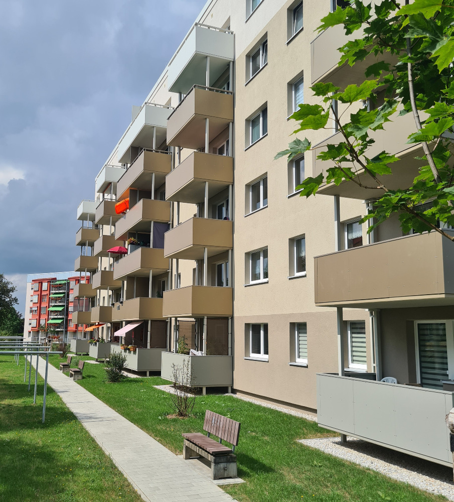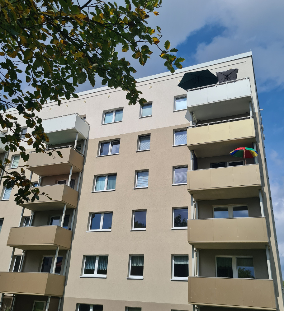 Die WG Frankenberg hat IGC mit der Sanierung und dem Umbau dieses sechsgeschossigen Wohngebäudes vom Typ WBS 70 IW83 beauftragt. Ursprünglich gab es im Gebäude 48 Wohneinheiten, die über vier Hauseingänge zugänglich waren. Mit einem durchdachten Wohnraumkonzept wurden die Grundrisse maßgeblich verändert und das Gebäude auf moderne Wohnstandards angepasst, wodurch nun 42 geräumige Wohneinheiten entstanden - ein gelungener Mix an größeren und kleineren Wohnungen für Jung und Alt. Außerdem wurden die vier Hauseingänge in zwei barrierefreie Haupteingänge mit Vorhäusern und zwei überdachte Nebeneingänge umgebaut. Zur Erhöhung der Zugänglichkeit wurden zwei Aufzüge eingebaut, die den barrierearmen Wohnraum erweiterten. Des Weiteren wurden sieben Balkontürme installiert und neue Zuwegungen geschaffen, was die Wohnqualität erheblich steigert. Ein zentrales Element des Projekts war auch die grundlegende Anpassung der Medien.
