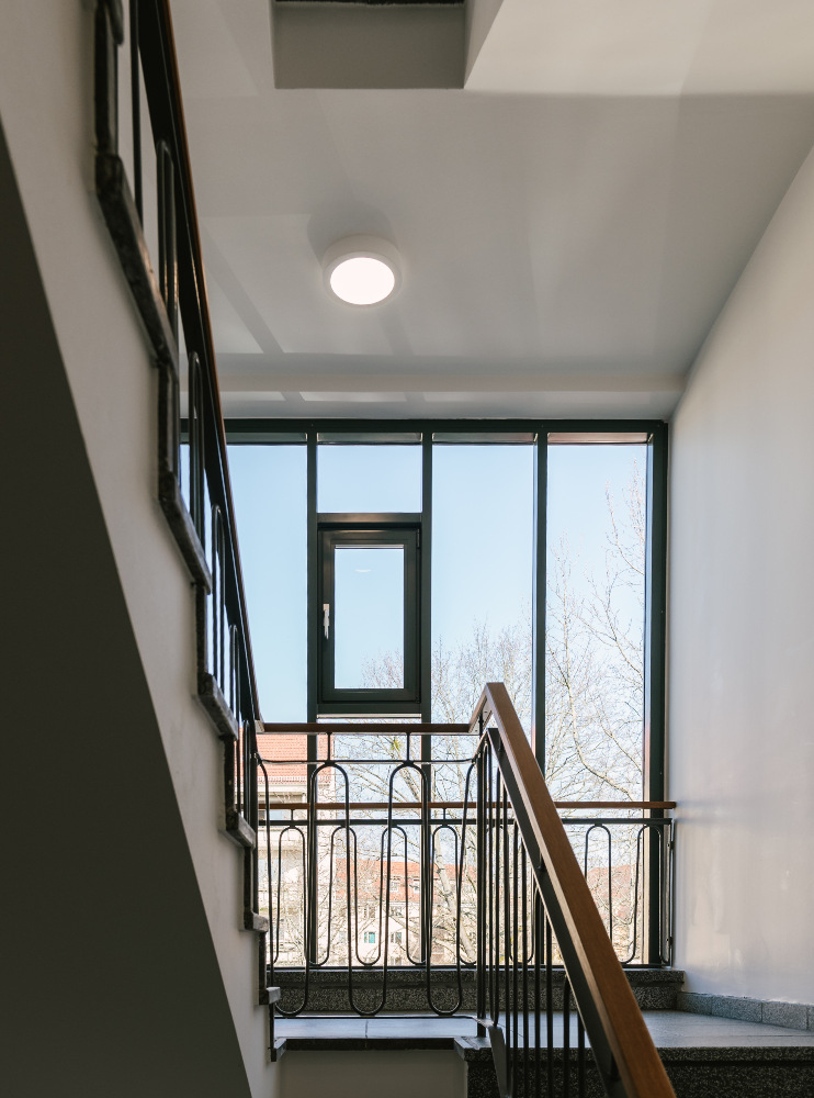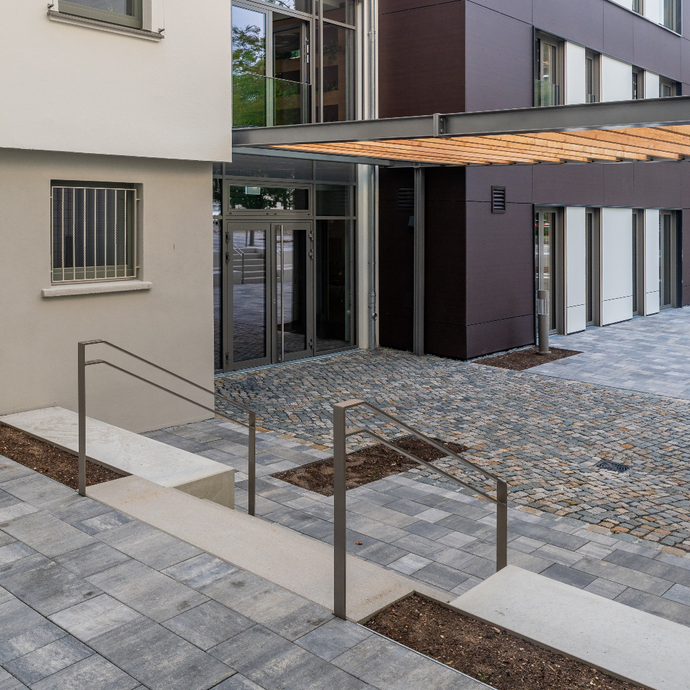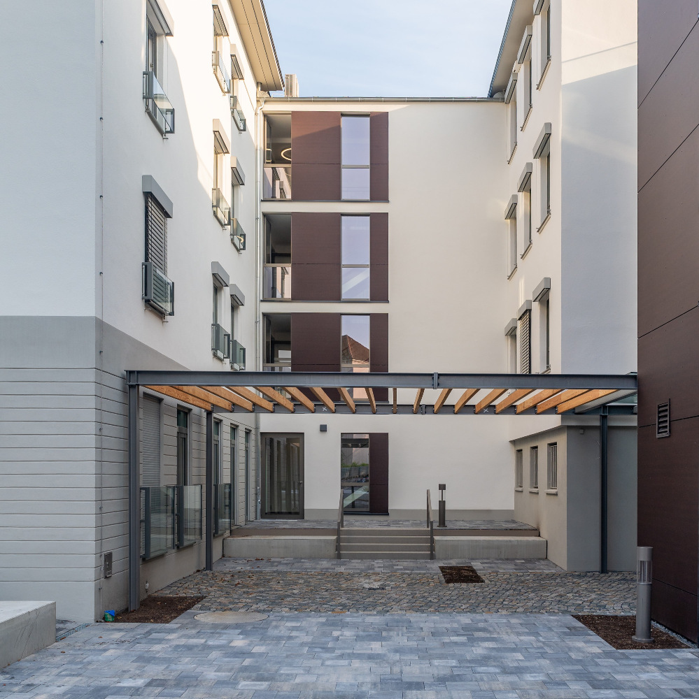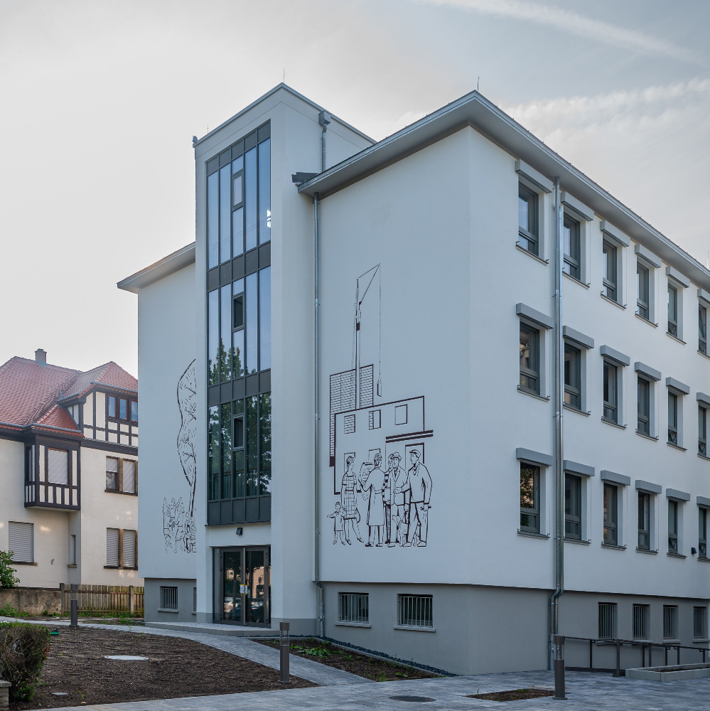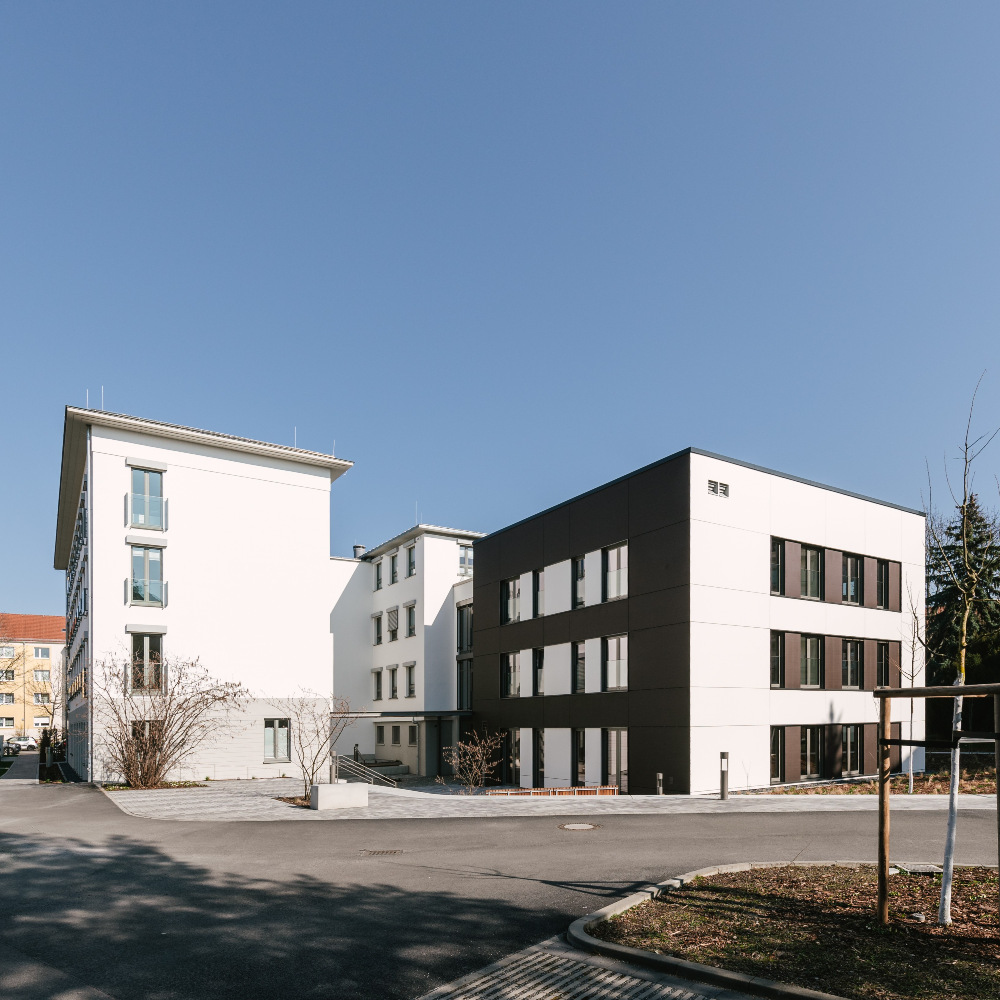 Die WG Aufbau Dresden eG ist einer der größten Wohnungsgenossenschaften der Region und hat derzeitig ca. 17.000 Wohnungen im Bestand. Immer mehr zentrumsnahe Wohnanlagen werden unter ihrer Leitung geschaffen und betreut. Die Verwaltung dieses immens großen Wohnungsbestandes und die Realisierung von Neubauprojekten bedeutet viel Arbeit für das Team der Wohnungsgenossenschaft. Das vorhandene Bürogebäude platzte fast aus den Nähten. Eine Erweiterung, Modernisierung und Neustrukturierung des Gebäudes auf der Henzestraße 14 war dringend erforderlich geworden. Neben der Schaffung von neuen Büroflächen und einem Parkplatz wurde auch auf eine zeitgemäße Gestaltung gesetzt.