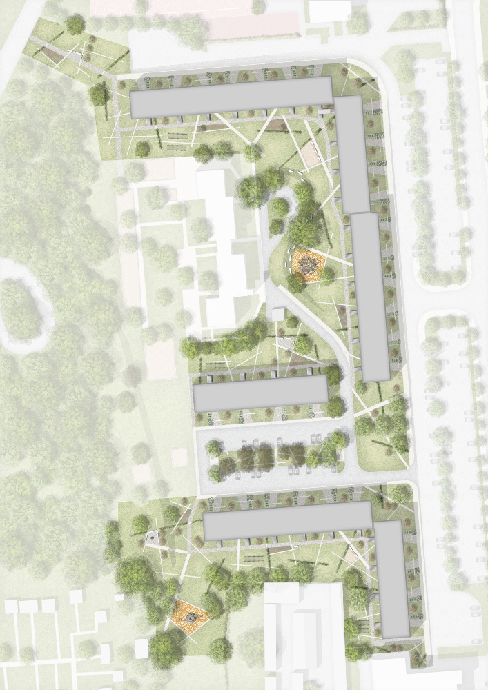Alle Wohnungen erhalten neue dezentrale Heizungsanlagen und eine Ertüchtigung der Elektroinstallation sowie die brandschutztechnische Ertüchtigung, um den aktuellen Anforderungen zu genügen. In einzelnen Häusern werden komplett neue Wohnungsgrundrisse mit innenliegenden Aufzügen zur barrierefreien Erreichbarkeit geschaffen. Ebenso erhalten die Treppenhäuser eine frische und helle Gestaltung mit einem attraktiven Beleuchtungskonzept. Es werden Gestaltungselemente implementiert, die sich in der Landschaftsarchitektur, den Fassaden und im Gebäudeinneren wiederfinden.