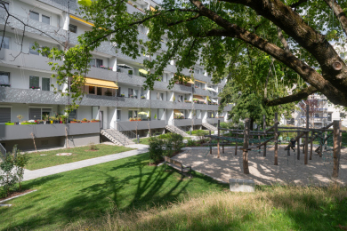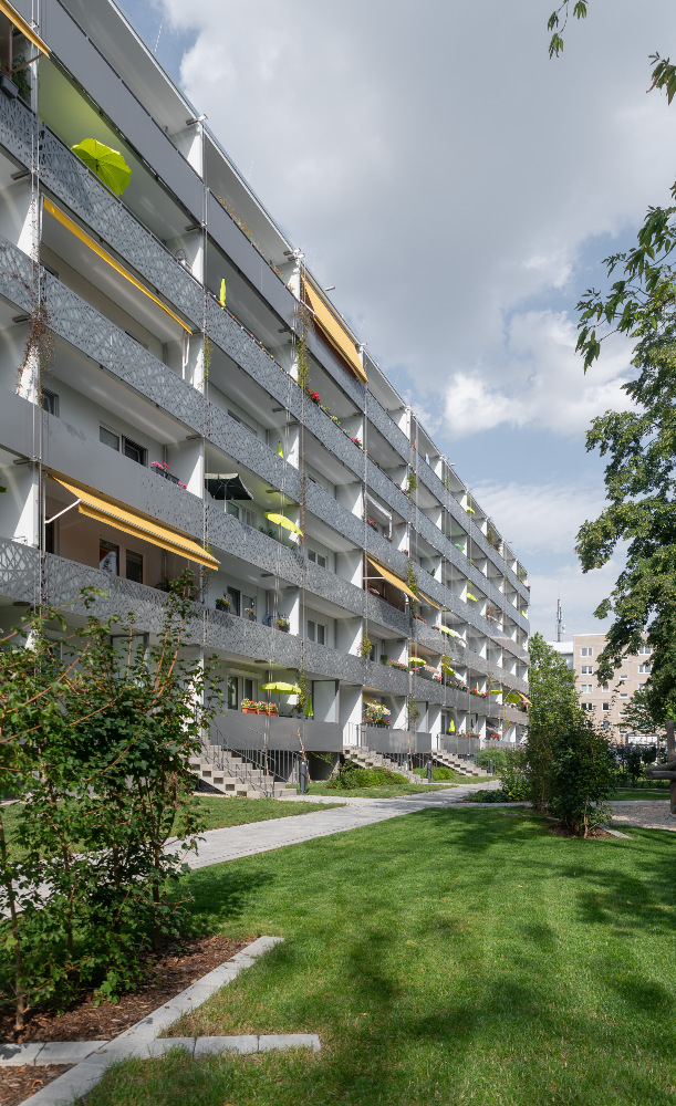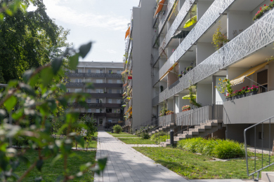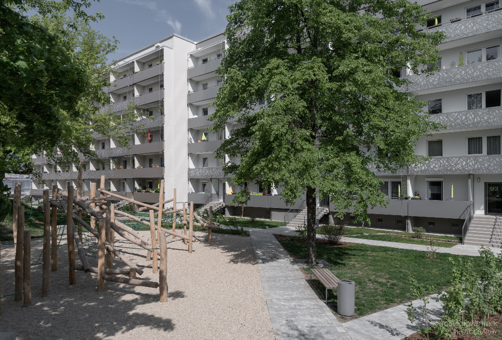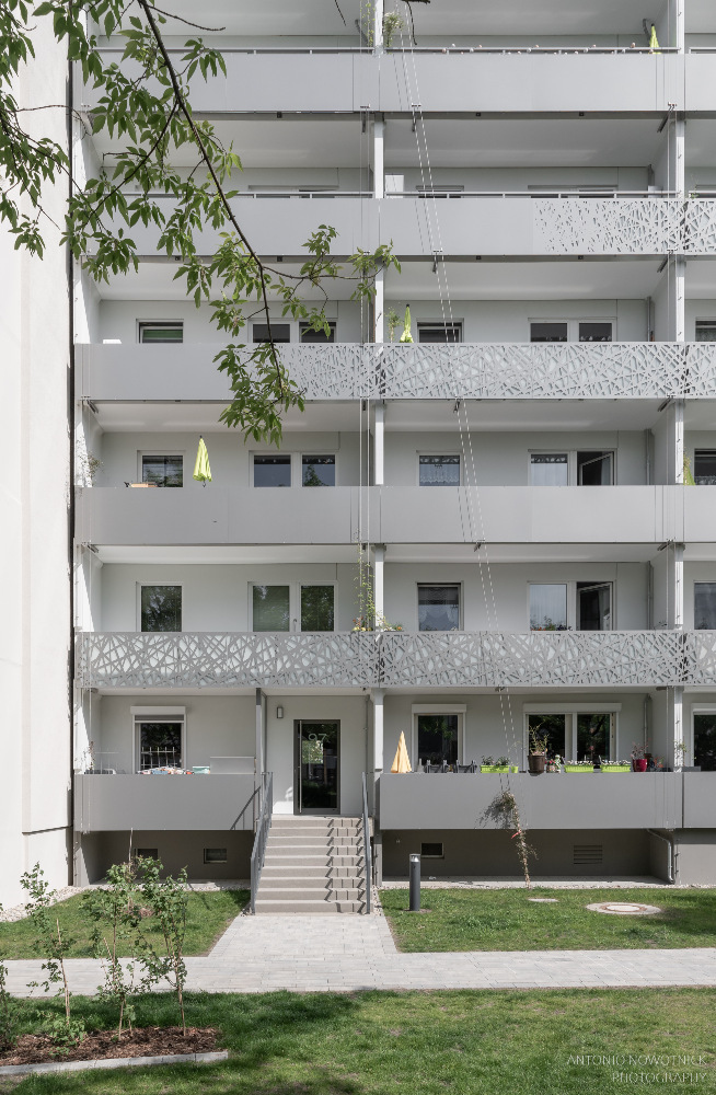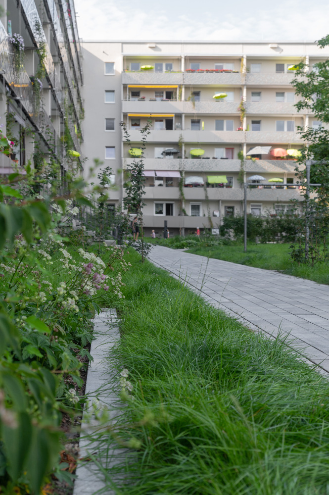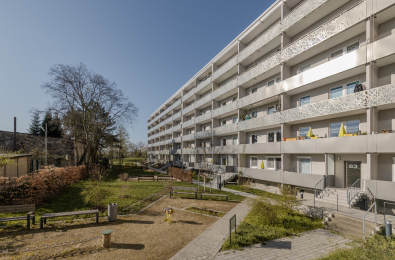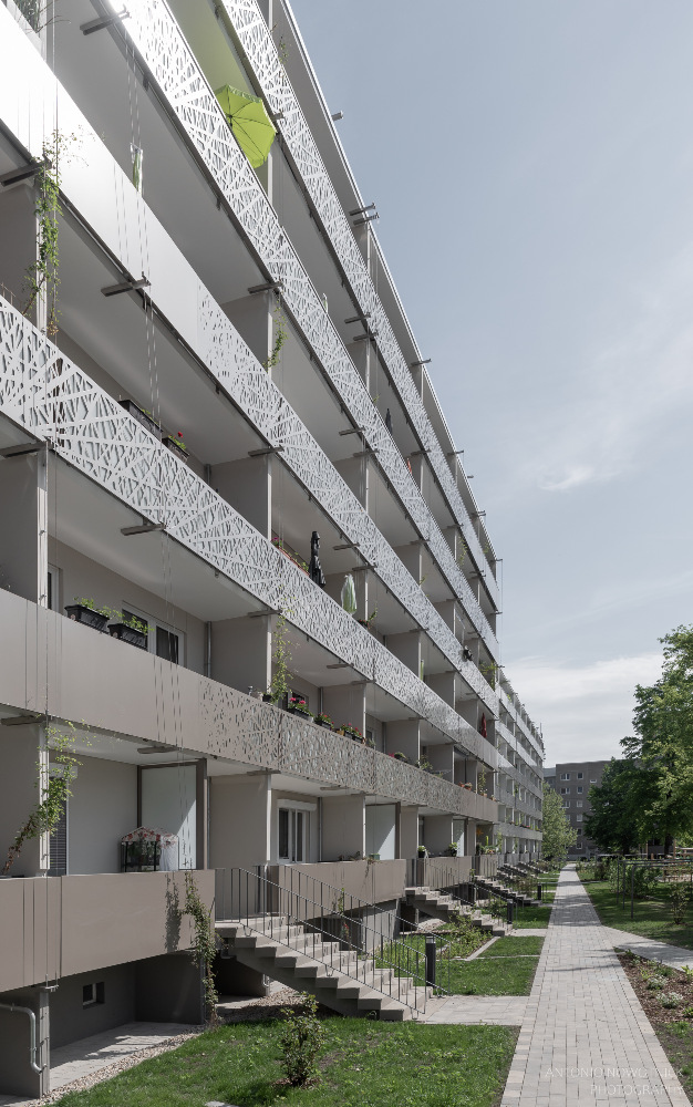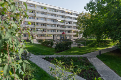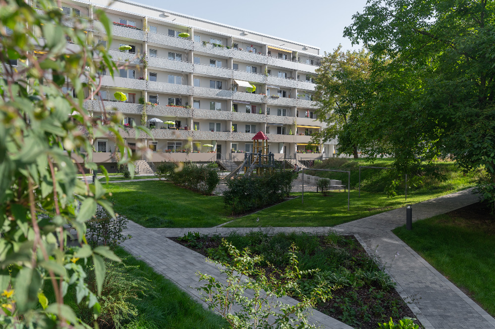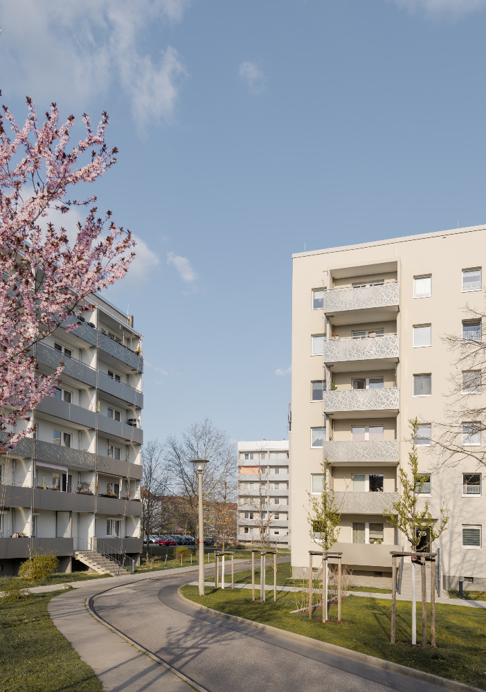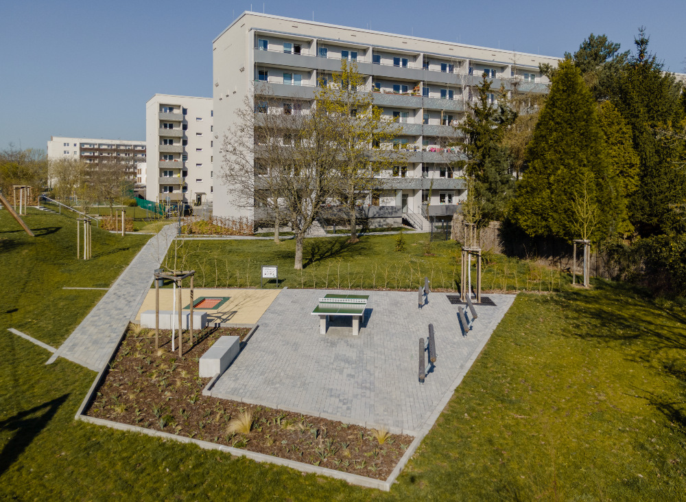 Das Wohngebiet an der Lommatzscher Straße erfährt durch die Neugestaltung eine Aufwertung vom grauen Plattenbaugebiet zum attraktiven Wohnquartier, wobei der Fokus bei der Planung besonders auf der Integration unterschiedlicher Haushaltsgrößen und Altersgruppen sowie ökologischer Aspekte und auf der Schaffung eines nachhaltigen Lebensraumes lag.