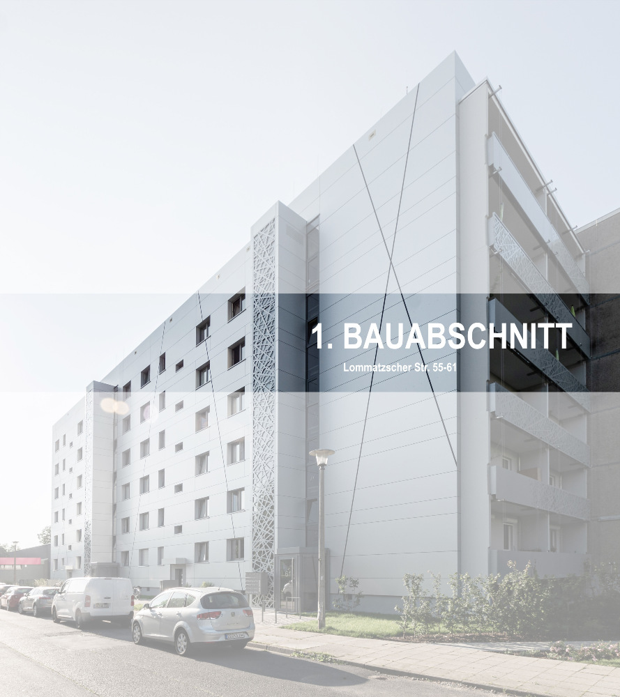 Das Wohngebiet der SWG an der Lommatzscher Straße wird von 2020 bis Ende 2024 saniert. An den bestehenden 6-geschossigen WBS70-Wohngebäuden werden unter anderem Außenaufzüge angebaut, Balkonbrüstungen erneuert, die Fassaden energetisch ertüchtigt und die Freianlagen für alle Nutzergruppen aufgewertet.