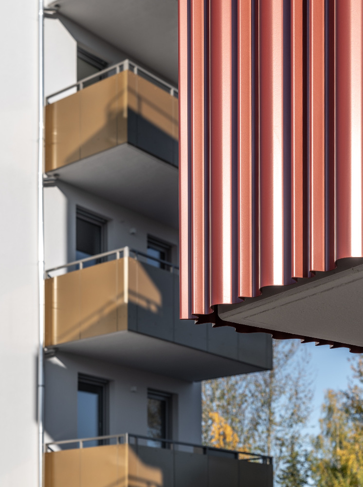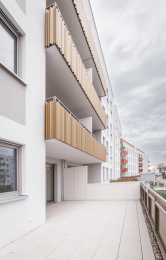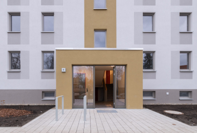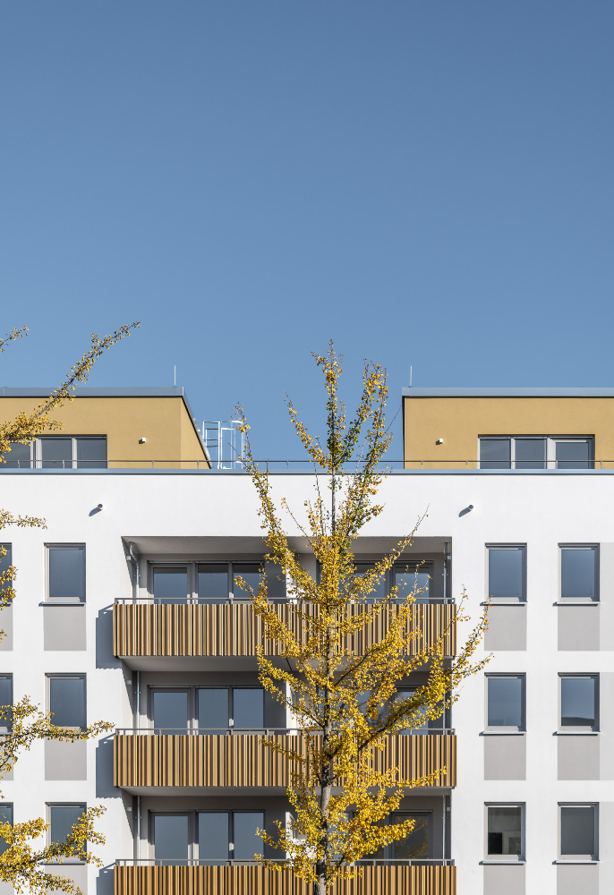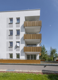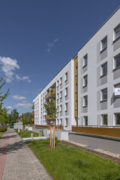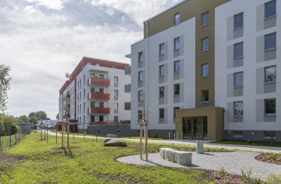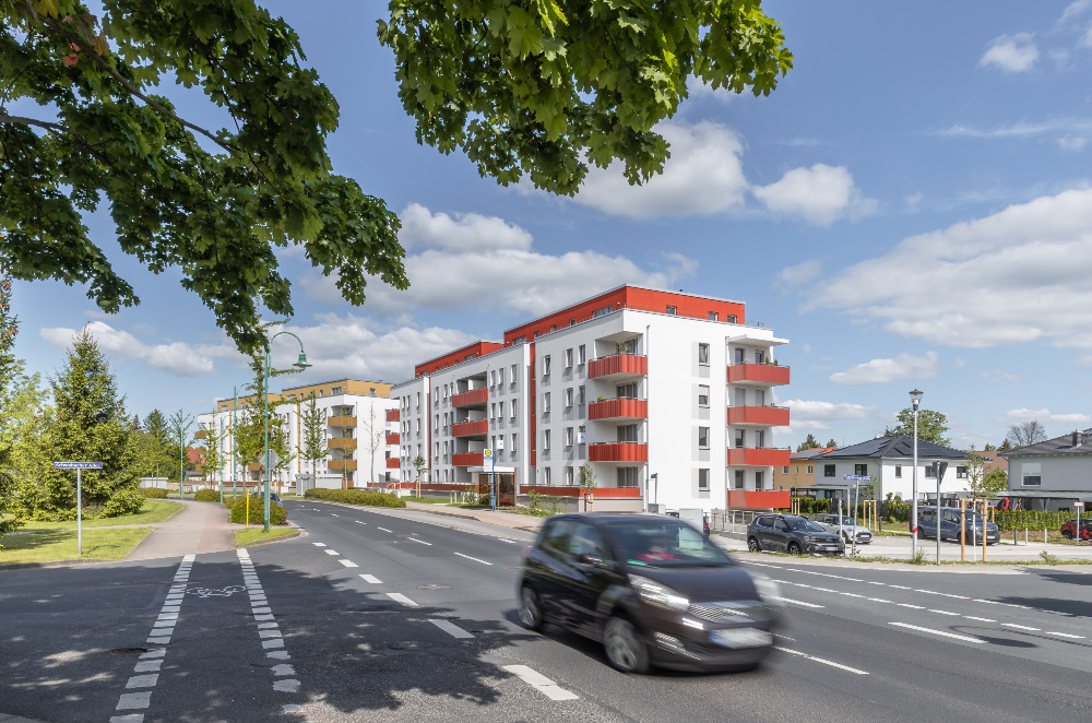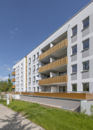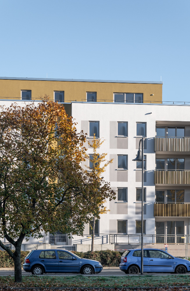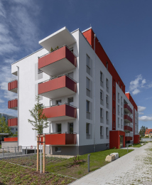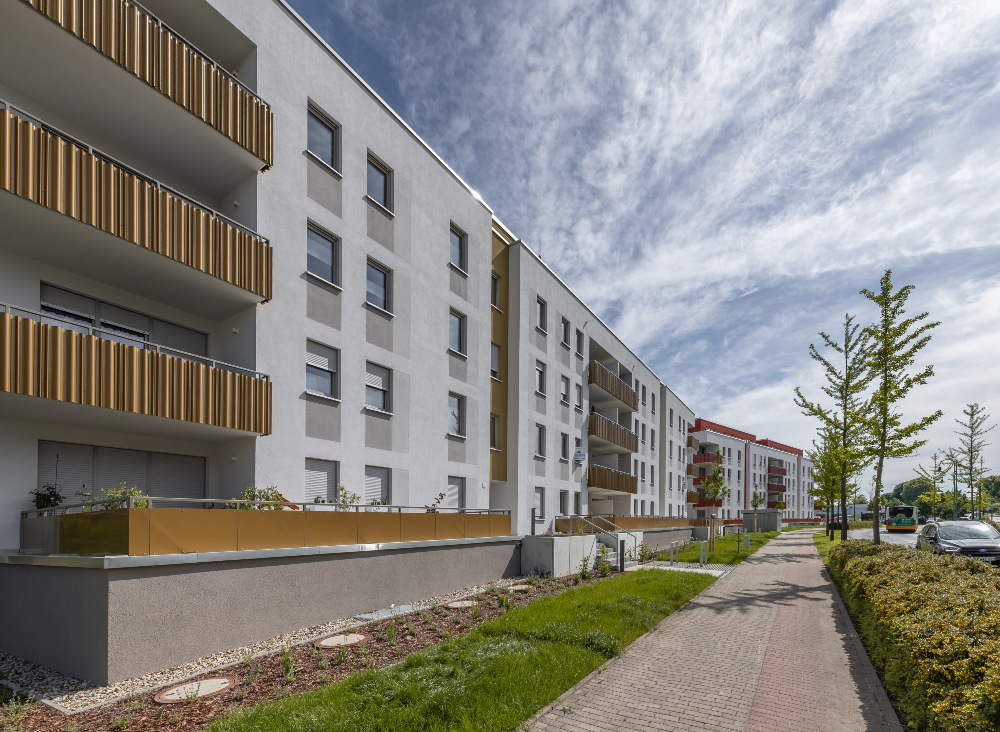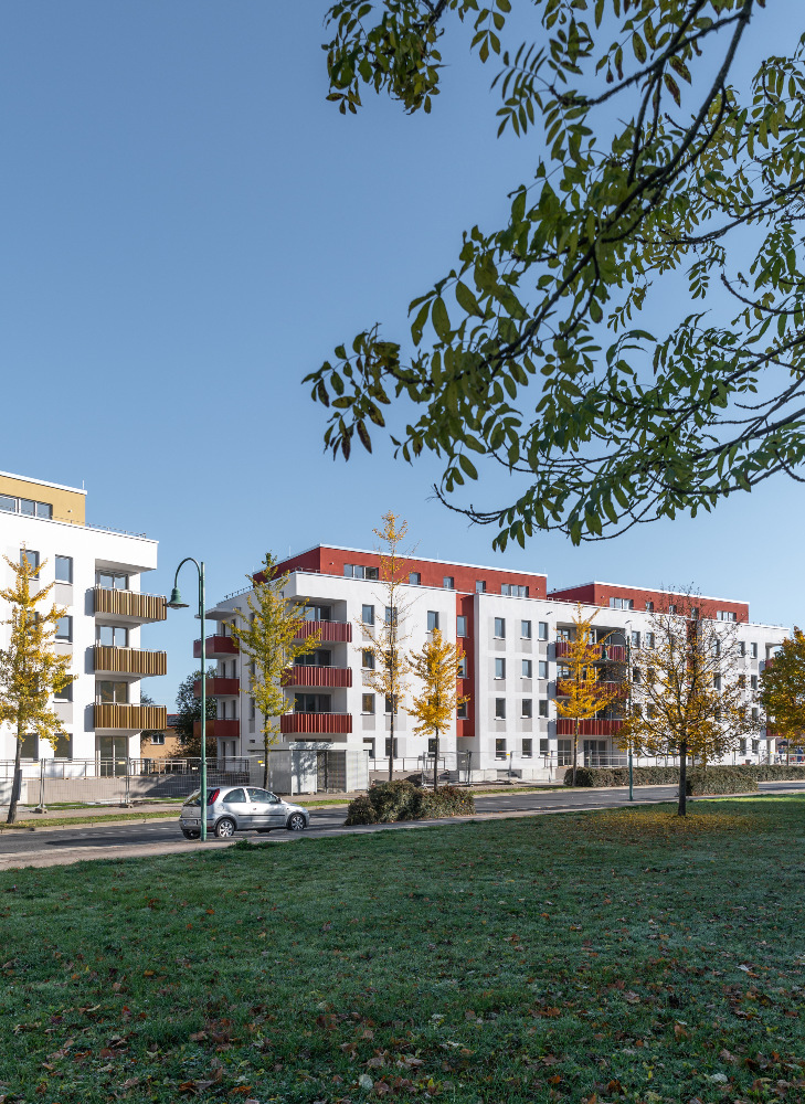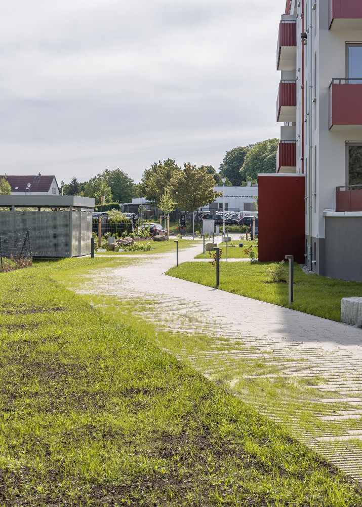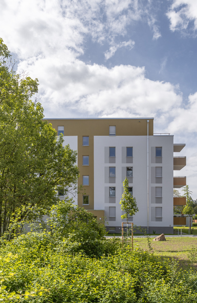 Auf dem Flurstück, welches über die Neratovicer Straße zu erreichen ist, wurden zwei Mehrfamilienhäuser mit insgesamt vier Hauseingängen mit je 10 Wohneinheiten errichtet. Acht giebelseitige Wohnungen wurden in diesem Zusammenhang barrierefrei ausgeführt. Neben den vier oberirdischen Vollgeschossen verfügen die Gebäude über jeweils ein zusätzliches Staffelgeschoss.