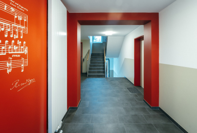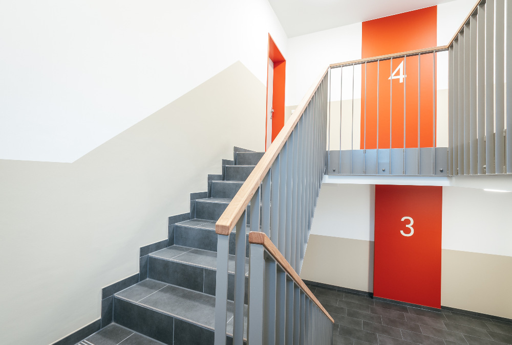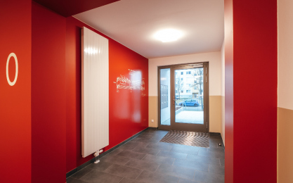 Die Wohnanlage ist für einen modernen Wohnkomfort konzipiert: Vier Eingänge, welche sowohl von der Straße als auch von der Hofseite erreichbar sind, bieten flexible Zugangsmöglichkeiten und jeweils einen zentralen Treppenaufgang samt Aufzug. Auch die Sicherheit und Funktionalität wurden berücksichtigt. Eine großzügig angelegte Zufahrt ermöglicht eine schnelle Rettung durch die Feuerwehr im Ernstfall und für eine umweltfreundliche Abfallentsorgung wurden zudem zwei großzügige Müllhäuser entworfen.