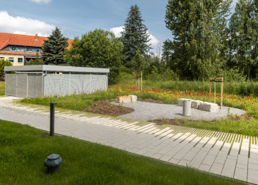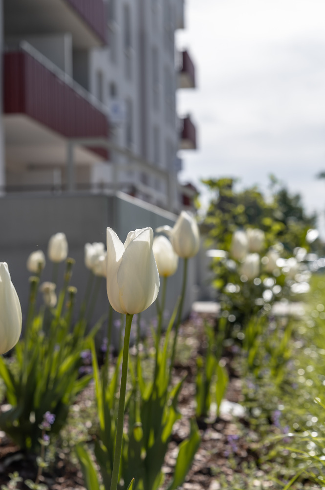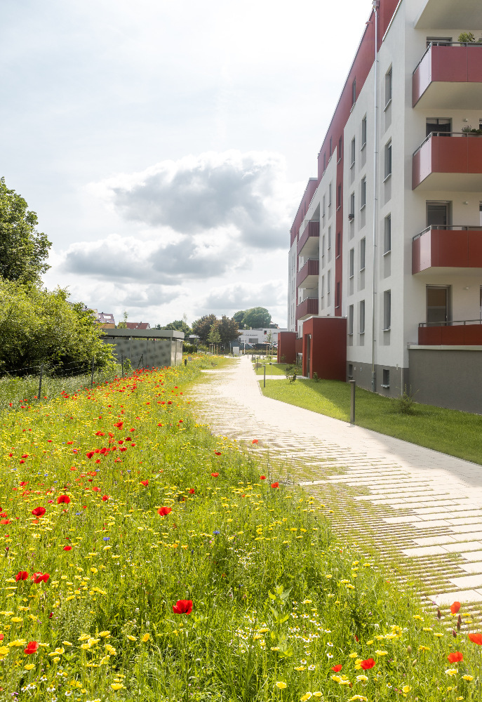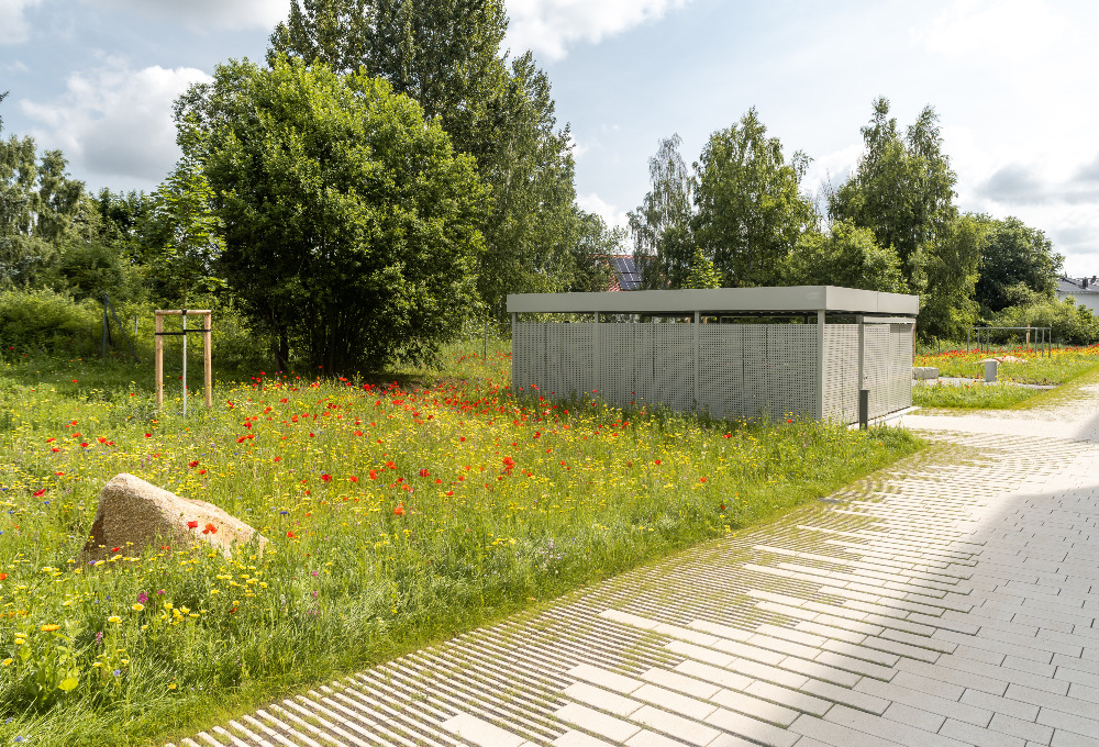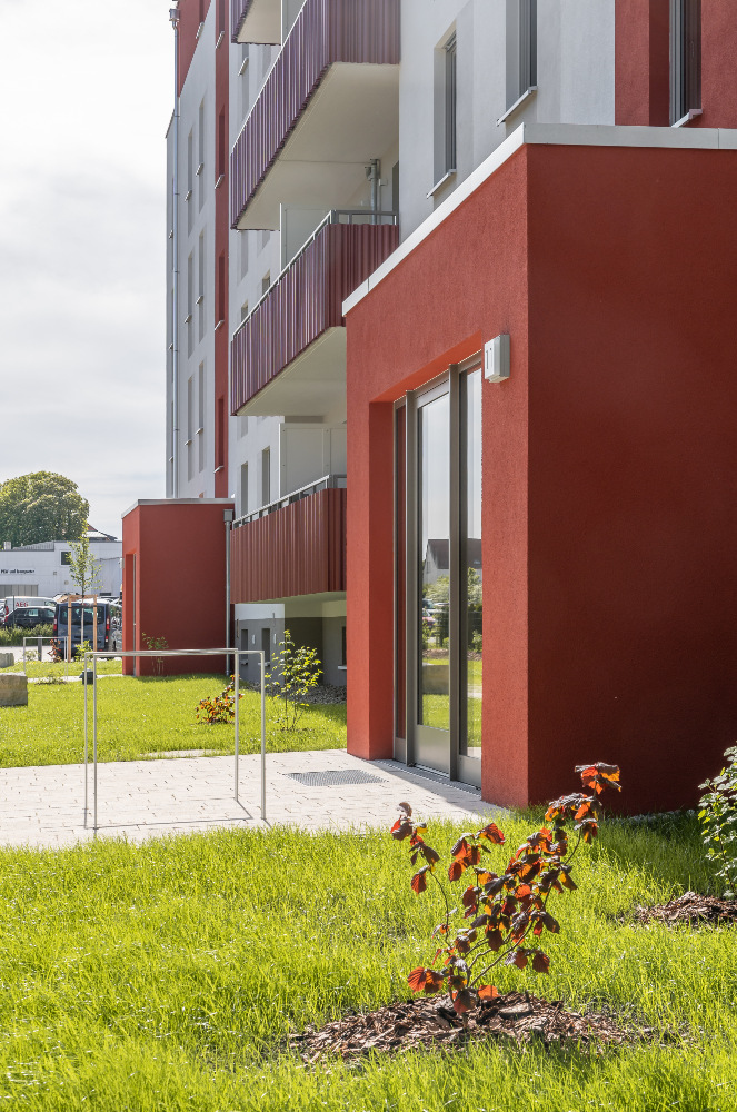 Die Planer haben sich außerdem intensiv mit den Bedürfnissen der Mieter bezüglich Fahrrad- und PKW-Abstellmöglichkeiten auseinandergesetzt. Daher gibt es insgesamt 36 externe Stellplätze, ergänzt durch eine großzügige Tiefgarage mit weiteren 40 Stellplätzen. Zusätzlich bieten zwei Fahrradhäuser Platz für bis zu 60 Fahrräder.