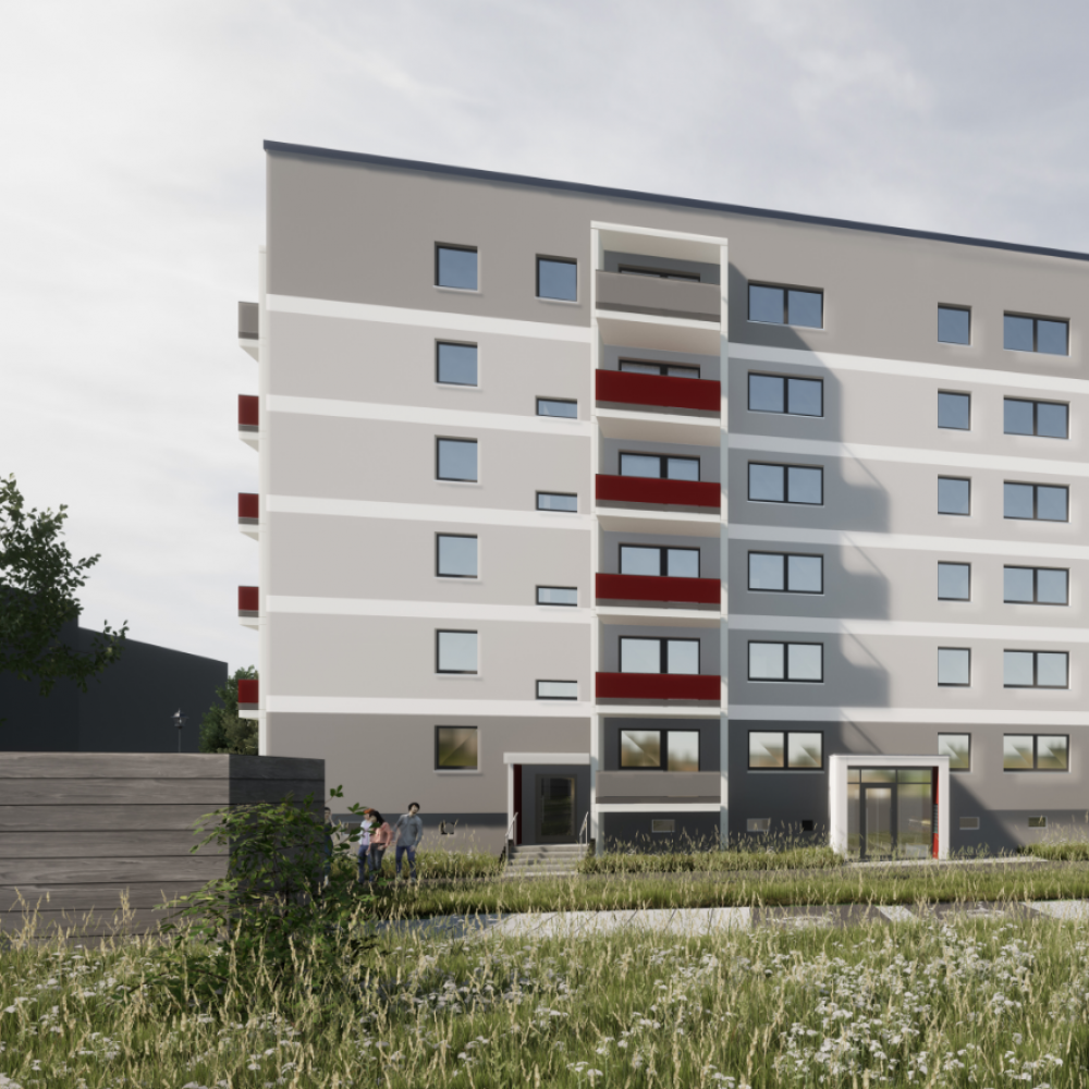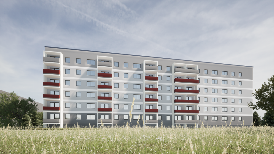 Dieses Wohngebäude des Typs WBS 70 in Lugau wird einer umfassenden Komplettsanierung unterzogen. Das Hauptziel besteht dabei darin, das Gebäude energetisch auf die Effizienzhausstufe 85 aufzuwerten, um den modernen Anforderungen an Energieeffizienz und Barrierefreiheit gerecht zu werden. Darüber hinaus sind ganzheitliche Grundrissänderungen sowie der Einbau von Aufzügen geplant, um barrierefreie Wohnungen zu schaffen und damit die Lebensqualität und Zugänglichkeit für alle Bewohner zu verbessern. In diesem Zuge werden außerdem auch bestehenden Balkone durch neue ersetzt und die Fassade umgestaltet.