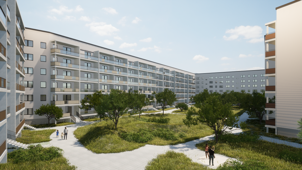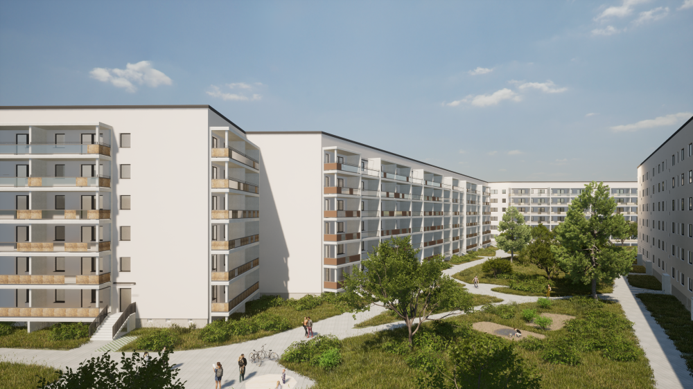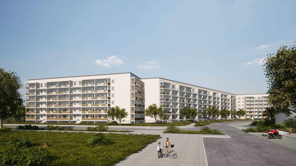 Diese Aspekte wurden bei der Entwicklung der Sanierungsstudie durch IGC berücksichtigt. Verschiedene Sternzeichen wurden so in das Gestaltungskonzept integriert, auch um den Bewohnern eine hohe Wiedererkennung ihrer Hauseingänge zu ermöglichen, die ursprünglich einheitlich und industriell gestaltet wurden. Zur Reduzierung von Barrieren wurden zudem an mehreren Hauseingängen vor den Gebäuden Aufzüge eingeplant. Zusätzlich zur energetischen Sanierung der Gebäudehülle und dem Austausch der Balkonbrüstungen sollen im Inneren alle Trinkwasser- und Elektrostränge erneuert sowie die Treppenhäuser neugestaltet werden. Abschließend erhalten auch die Hauszugangsbereiche eine moderne und pflegeleichte Außenanlage.