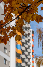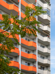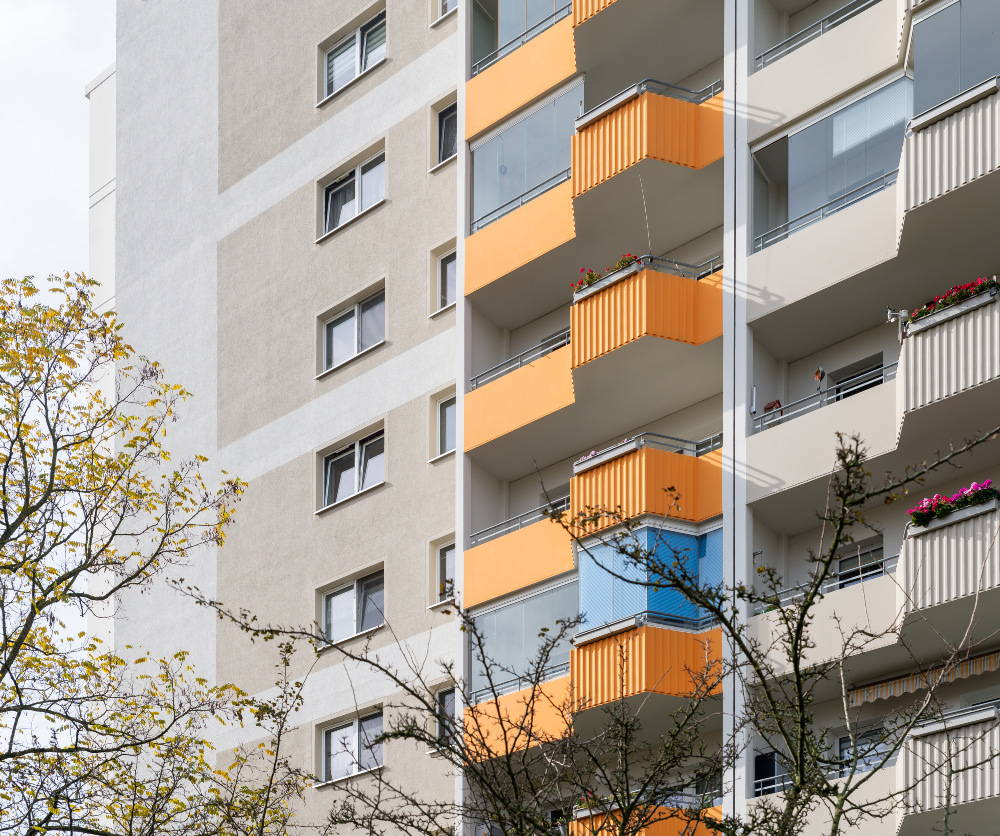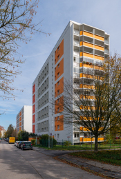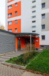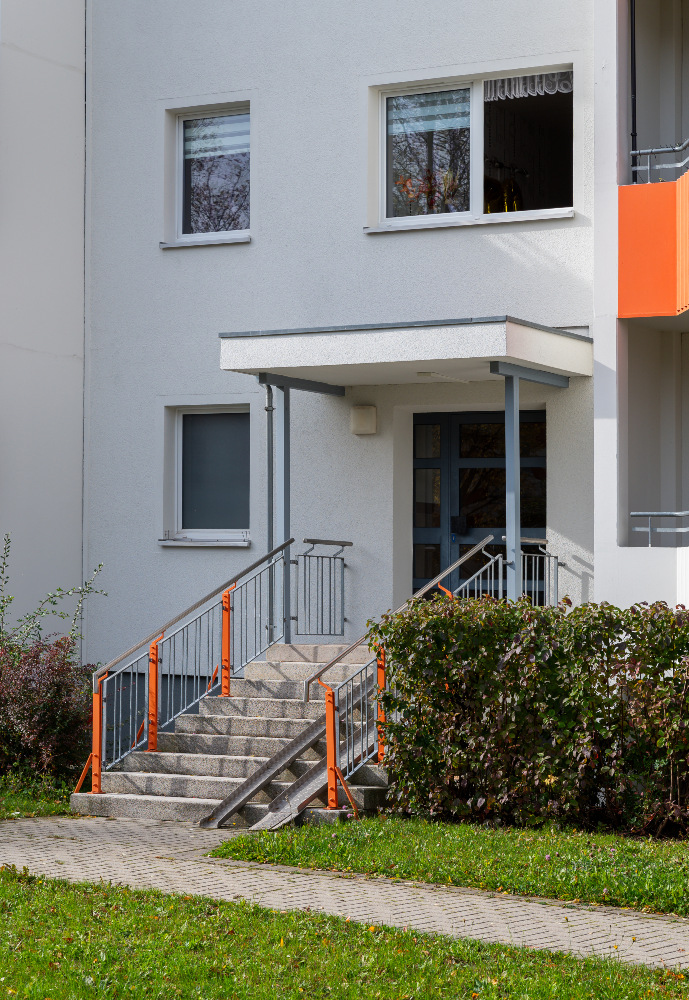Zusätzlich zur technischen Sanierung wurde auch das Design der Fassade durch unsere Architekten überarbeitet und das Gebäude mit einer modernen Farbgestaltung wirkt nun frisch und modern.