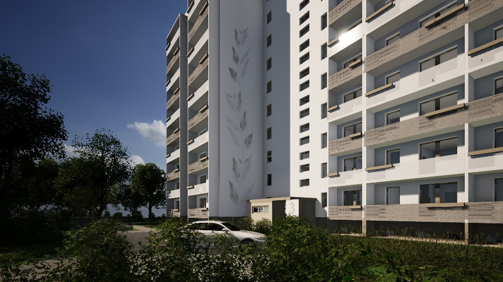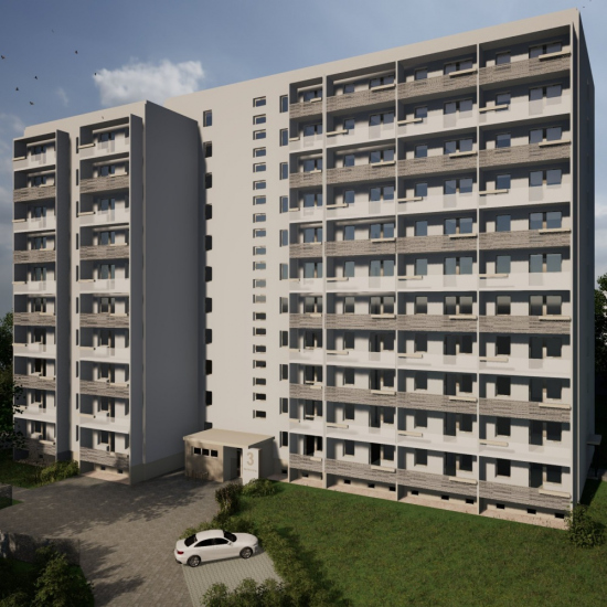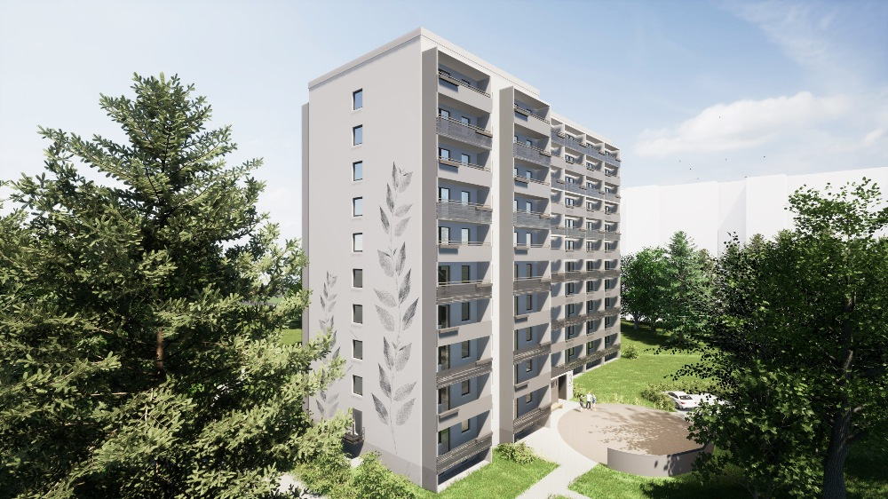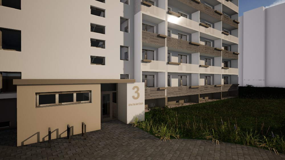 Mit der Alfred-Neubert-Straße 3 in Chemnitz entsteht ein Wohnprojekt, das Bestehendes bewahrt und konsequent in die Zukunft führt. Das Bestandsgebäude wird umfassend modernisiert und zu einem zeitgemäßen Zuhause mit hohem Komfort-, Sicherheits- und Nachhaltigkeitsniveau entwickelt. Ziel ist ein energetischer Standard nach KfW-85 – ein spürbarer Beitrag für ressourcenschonendes, zukunftsfähiges Wohnen. Dazu erhält die Fassade eine leistungsfähige Mineralwolldämmung; neue Fenster mit Dreifachverglasung verbessern den Wärmeschutz deutlich, und auch Dach sowie Geschossdecken werden energetisch ertüchtigt. Gestalterisch wird die Gebäudehülle mit einer klar gegliederten, ruhigen Fassadengestaltung und durchlaufenden Balkonbändern neu geordnet und erhält so ein zeitgemäßes Erscheinungsbild. Bestehende Balkone werden saniert und mit neuen Brüstungen ausgestattet, Wohnungen ohne Balkon erhalten erstmals großzügige Anstellbalkone.