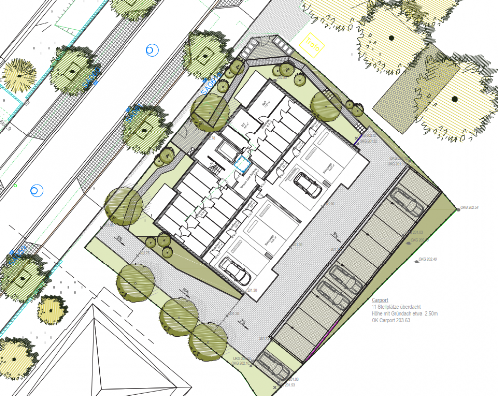 Hochwertige Materialien in der Ausstattung, zum Beispiel Stahlbeton- und Kalksandsteinmauerwerk, ein effizientes Wärmedämmverbundsystem (WDVS) sowie moderne Bodenbeläge garantieren Nachhaltig- sowie Langlebigkeit. Für die Bewohner stehen sieben Stellplätze in der Tiefgarage und zwölf weitere unter einem Carport zur Verfügung.