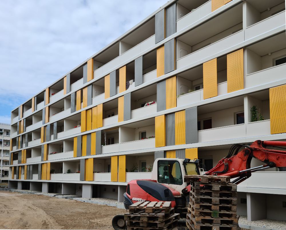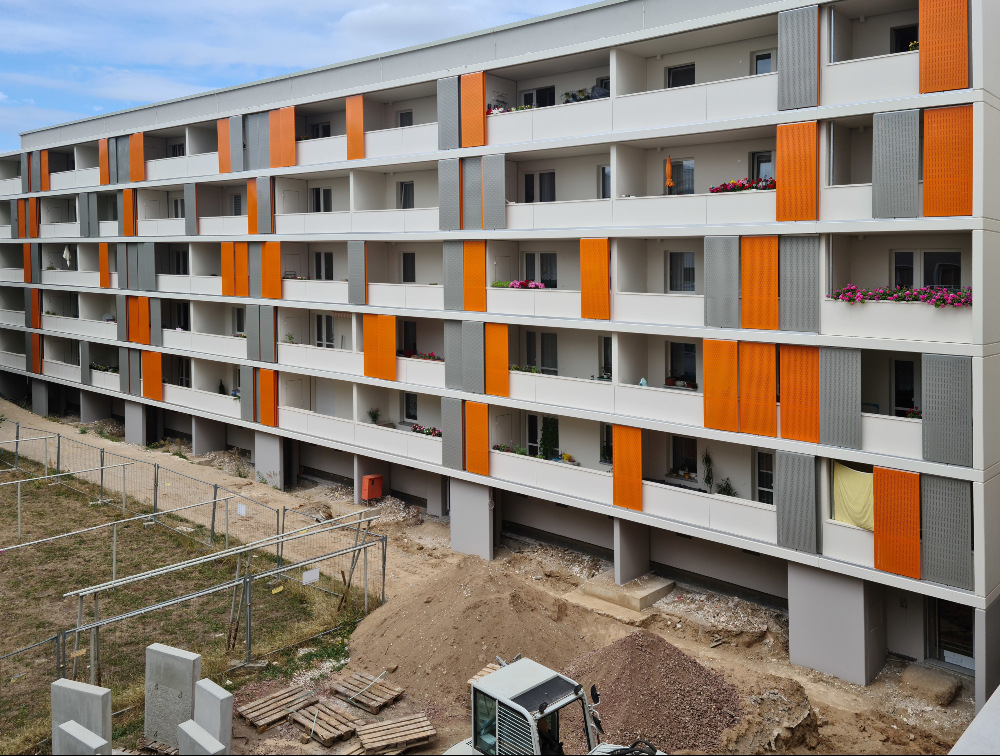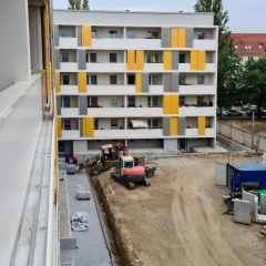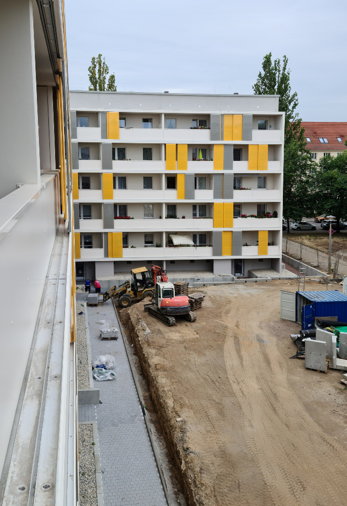 Das Bauvorhaben auf der Enderstraße 2-42 der Wohnungsgenossenschaft Aufbau Dresden eG steckt in den letzten Zügen. Das Projekt wurde in insgesamt drei Abschnitten bearbeitet. Der 1. BA erstrahlt in einem Mintgrün, der 2. BA in einem Safrangelb und der 3. BA in einem Tieforange. Und nun sind alle drei fast fertig! Grundlegend wurde der ganze Komplex einer Strangsanierung unterzogen und die Treppenhäuser saniert. Zudem sind alle Gebäude nun barrierefrei über die Hintereingänge zugänglich und verfügen über Aufzugsanlagen. Die neuen Kellerbereiche bieten ausreichend Platz für Lagerräumlichkeiten bzw. Abstellmöglichkeiten und neue Balkone mit verschiebbaren Läden laden die Mieter zu lauen Balkonsommerabenden ein. Die idyllische Ausstrahlung der dazu passenden Außenanlagen rundet dieses Erlebnis perfekt ab. Den Mietern der Enderstraße wünschen wir damit viel Freude und viele unvergessliche Momente.