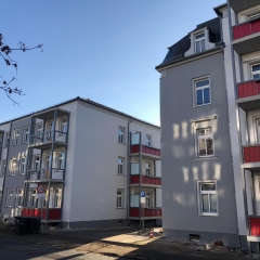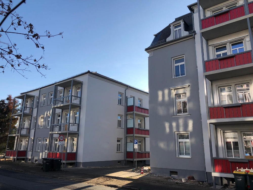 In Heidenau wurden bei zwei Mehrfamilienhäusern der Wohnungsbau- und -verwaltungsgesellschaft Heidenau mbH die Fassaden komplett saniert, Wärmedämmung angebracht und insgesamt 7 neue Balkontürme errichtet. Außerdem bekommen die Straßenbalkone eine Verglasung. Durch das umgesetzte Farbkonzept erhalten die Wohnhäuser ein freundliches, modernes Aussehen. Im neuen Jahr werden dann die Außenanlagen neu gestaltet.