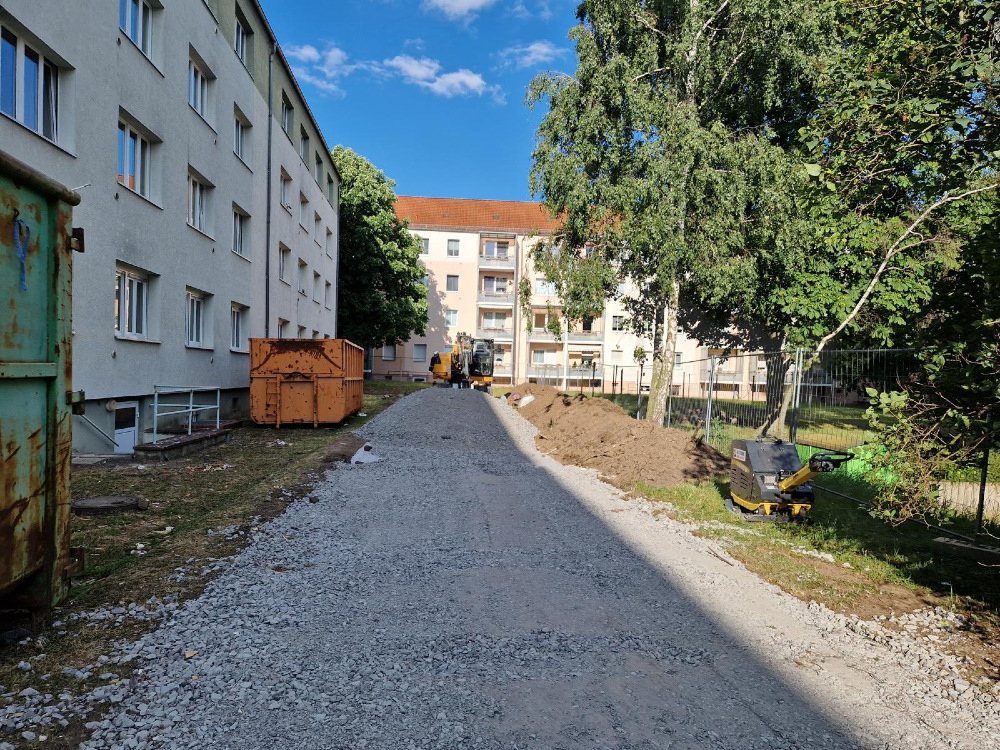 Das Projekt, mit dem die Vereinte Leipziger Wohnungsgenossenschaft IGC beauftragt hat, geht wortwörtlich auf "Neue Wege". Derzeit laufen die Abbrucharbeiten in den Wohnungen, wobei der Schwerpunkt auf dem Entfernen der Türen und dem Abtragen der Bodenbeläge liegt. Gleichzeitig wurden alle erforderlichen Maßnahmen für die Baustelleneinrichtung ergriffen. Dazu zählt die Bereitstellung von WC-Containern, die Einrichtung eines Baubüros und das Errichten eines Baustellenzauns. Zusätzlich wurde eine temporäre Baustraße angelegt, um den Zugang zur Baustelle zu ermöglichen.