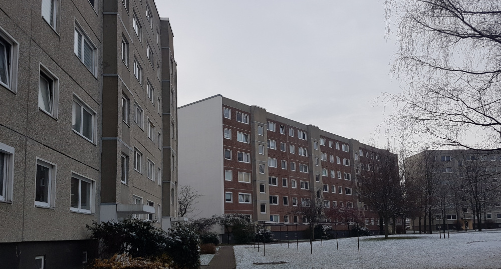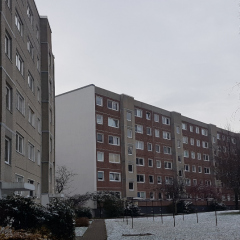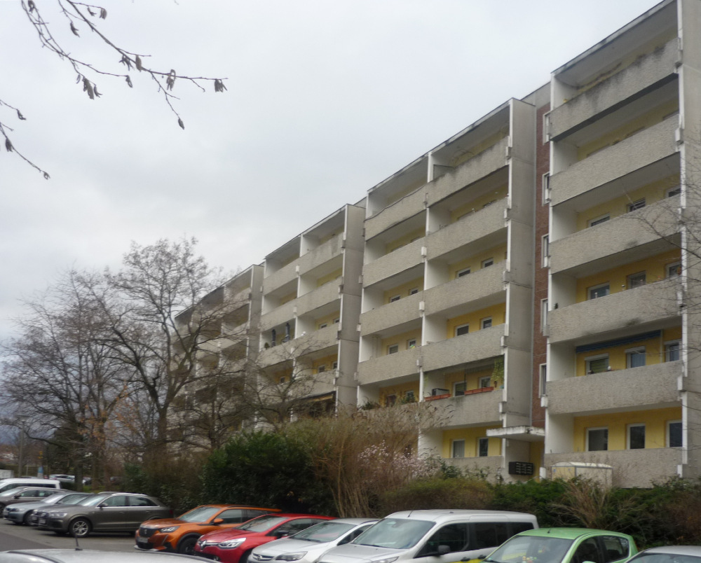 Anfang März starteten die weiteren Sanierungsabschnitte der Ginstersiedlung. Es werden 12 Häuser der EWG Dresden eG über zwei Jahre brandschutztechnisch und haustechnisch saniert. Auch die Fassaden werden dem Gesamtkonzept in Rot-, Gelb- und Grautönen mit dem Mosaik-Motiv des vorangegangenen Bauabschnitts ergänzt. Gestartet wird mit dem 1. Bauabschnitt - der Maulbeerenstraße 18-24. Dort werden die alten Betonbrüstungen abgebrochen und neue Geländer mit Brüstungsblechen ergänzt, womit dem Bestandsbaukörper ein modernes Äußeres gegeben wird.
