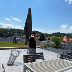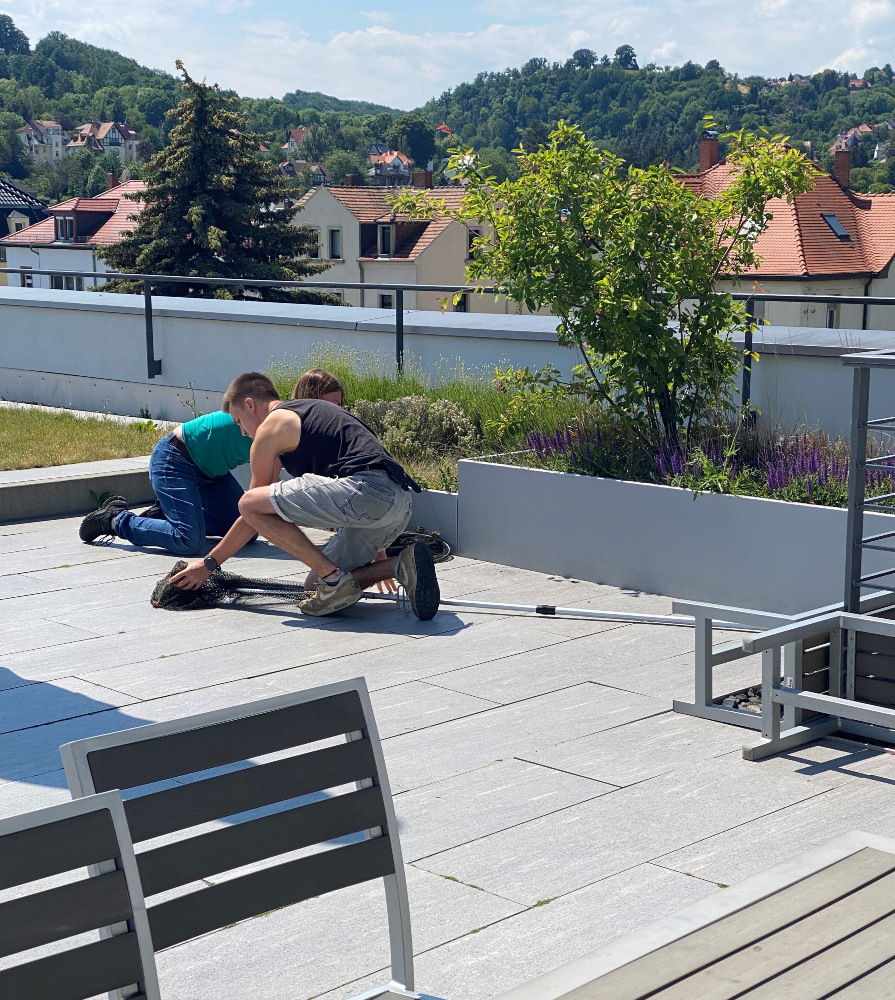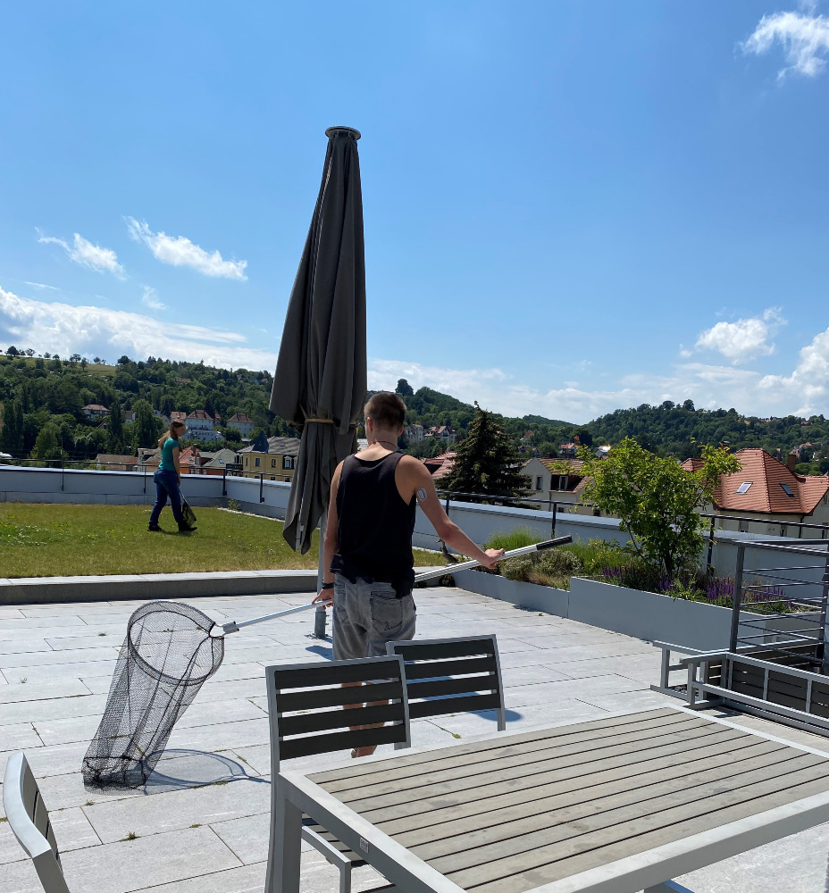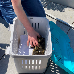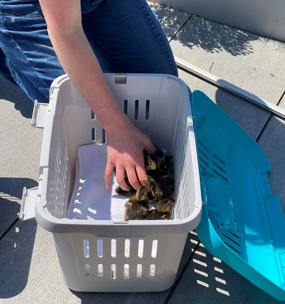 Seit ca. 1 Monat brütete eine Ente auf der IGC-Dachterrasse und nun hatte sie es endlich geschafft. Nicht weniger als 10 kleine Entlein watschelten am frühen Morgen ihrer Mama aufgeregt hinterher. Auch wenn sie alle zuckersüß waren, mussten die kleinen Enten schnell ans bzw. ins Wasser. Also kamen die Retter der Wildtierrettungsstation und setzten die kleine-große Familie an die Elbe um. Was für ein aufregender Start in so ein tolles Entenleben! IGC wünscht den Kleinen und natürlich auch der Mama alles Gute!