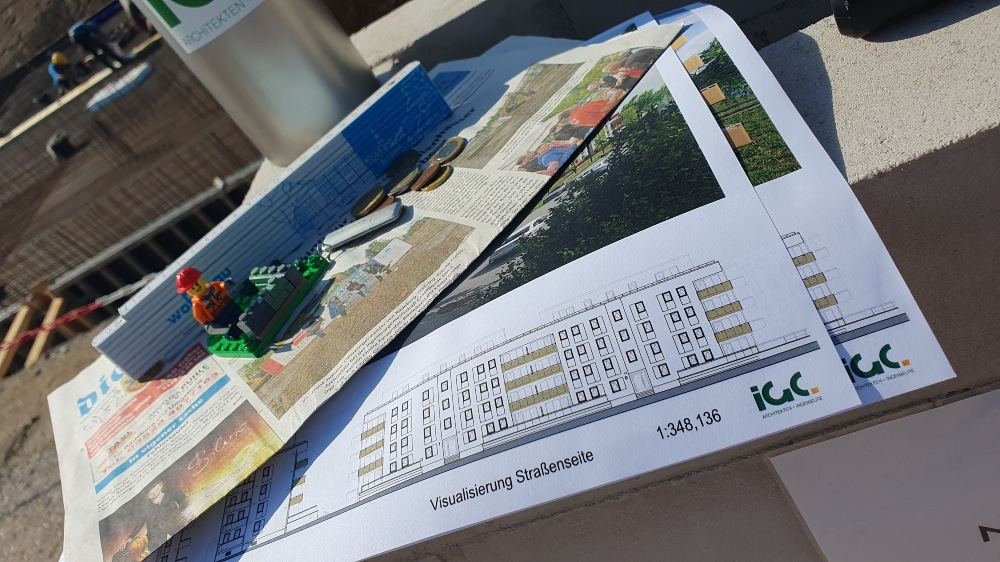 Nach dem feierlichen Spatenstich, den IGC zusammen mit dem Bauherren, der Wohnbau Radeberg, und den Gewerken gesetzt hat, folgt nun die Grundsteinlegung für das Bauvorhaben.