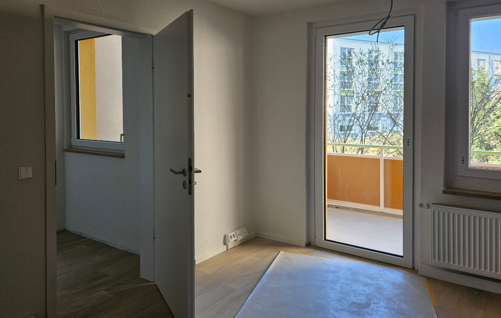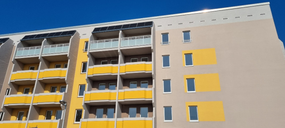 Das Gebäude im Meißner Norden nimmt sichtbar Gestalt an. Der neue Balkonturm ist bereits fertiggestellt und fügt sich stimmig in das Gesamtbild ein. Auch die Photovoltaikanlage ist vollständig montiert – ein wichtiger Baustein für die nachhaltige Ausrichtung des Blocks.