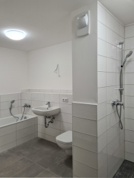Auch im Innenbereich wurde mit Sorgfalt und technischem Know-how an den letzten Details gearbeitet. Im Zuge der Strangsanierung wurden sämtliche Leitungsführungen auf den neuesten Stand gebracht – eine wichtige Grundlage für nachhaltige Funktionalität und langfristige Betriebssicherheit. Durch gezielte Maßnahmen im Rahmen der energetischen Ertüchtigung des Gebäudes mit Errichtung einer PV-Anlage am Dach wird der Energieverbrauch deutlich reduziert und der Wohnkomfort spürbar erhöht. Darauf aufbauend erhielten Küchen und Bäder in je einem Umbaustrang in den Häusern 35, 37 und 39 (18 WE), in 17 Leer-WE sowie auf Mieterwunsch eine moderne, zeitgemäße Gestaltung. Hochwertige Materialien, durchdachte Grundrisslösungen und eine präzise Ausführung sorgen dafür, dass sich Technik und Design hier optimal ergänzen.
