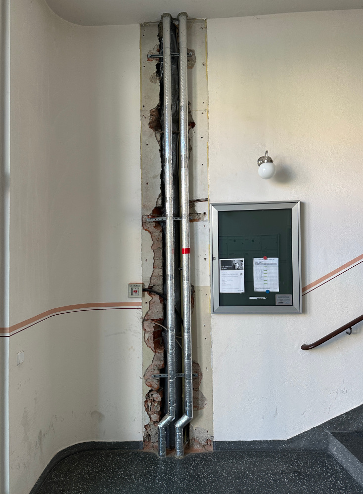 Im Zuge der Sanierung wird auch das Heizungsrohrleitungssystem vollständig erneuert, dies umfasst die Installation neuer Rohrleitungen sowie die Einrichtung moderner Heizflächen. Durch diese Maßnahmen wird eine effiziente und zuverlässige Beheizung der Gewerbeeinheit sichergestellt.