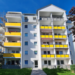 Die Mieter, die teilweise schon viele Jahre in diesen Gebäuden leben, wurden in diesem Zusammenhang natürlich auch bedacht - sie können sich nun über barrierefreie Balkonaustritte und moderne Badezimmer freuen. Insgesamt wurden 12 Wohnungen, die bisher keinen Balkon hatten, mit großzügigen Balkonanlagen ausgestattet, um den Wohnkomfort zu steigern. Im Haus 13, das bisher noch keinen Aufzug hatte, wurde außerdem hofseitig ein zusätzlicher barrierefreier Zugang geschaffen und ein innenliegender Aufzug errichtet, wodurch eine barrierefreie Erschließung aller Wohnungen dieses Hauses erzielt wurde.