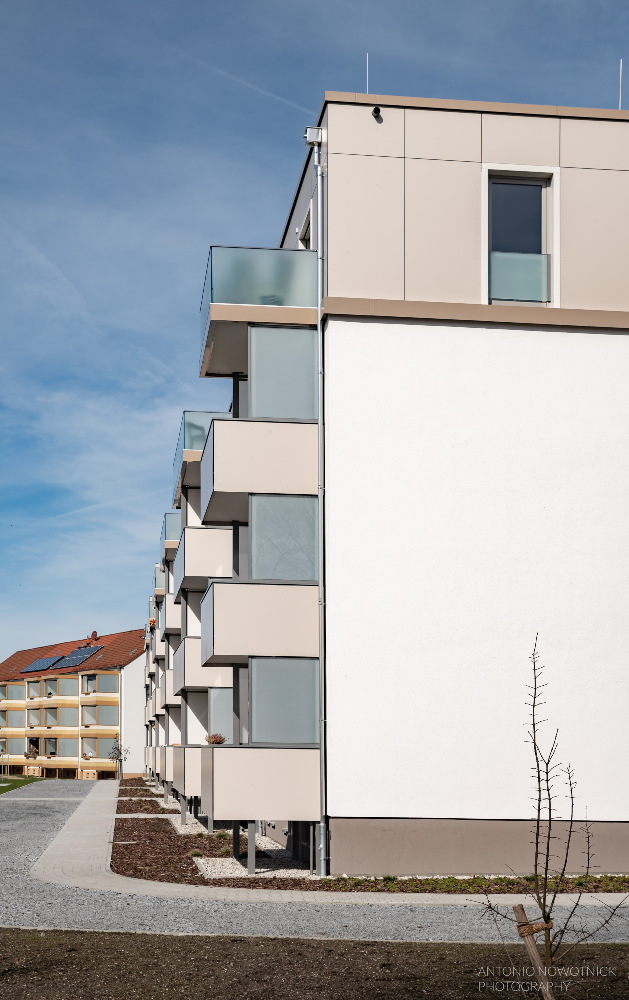 Wie schon im Projekt Blasewitzer Straße 36-50 wird auch bei diesem Vorhaben eine Aufstockung auf ein bestehendes Mehrfamilienhaus geplant und realisiert. Mit der Aufstockung entsteht eine zusätzliche Grundrissvielfalt von 1- bis 4- Raum Wohnungen. In das Gebäude werden zwei Aufzugsanlagen integriert und alle Wohnungen erhalten jeweils einen Balkon. Die Hauszugänge werden mit zwei Vorhäusern und drei Vordächern ergänzt. In die Freianlage werden neben einer Feuerwehrzufahrt und einer Aufstellfläche PKW-Stellplätze, eine Fahrradgarage und ein Freisitz hergerichtet.