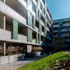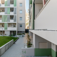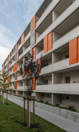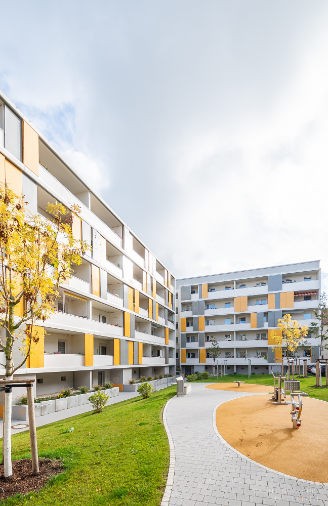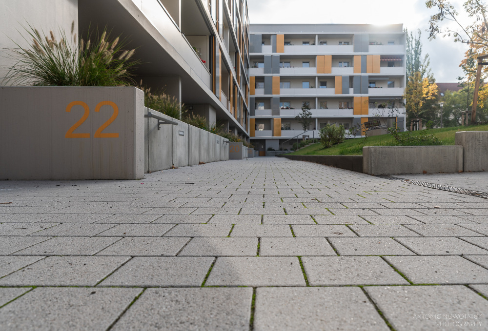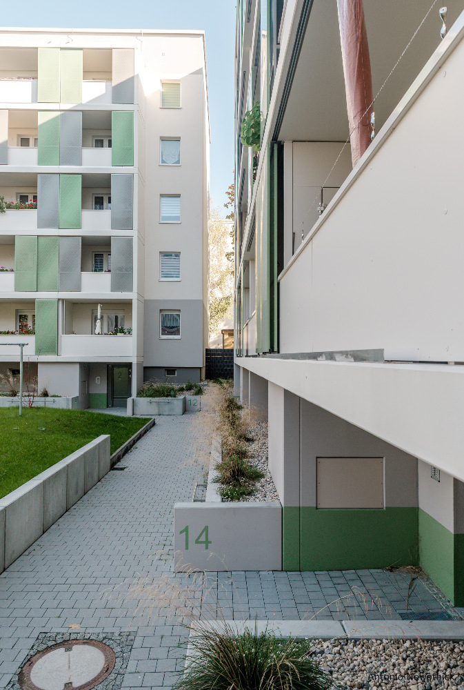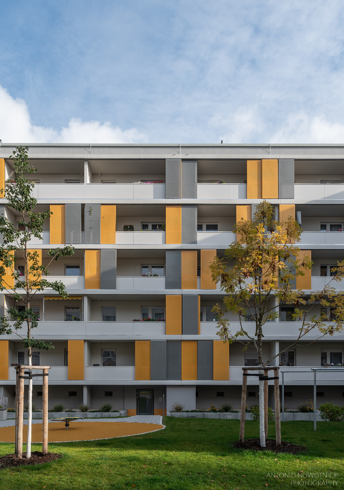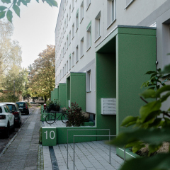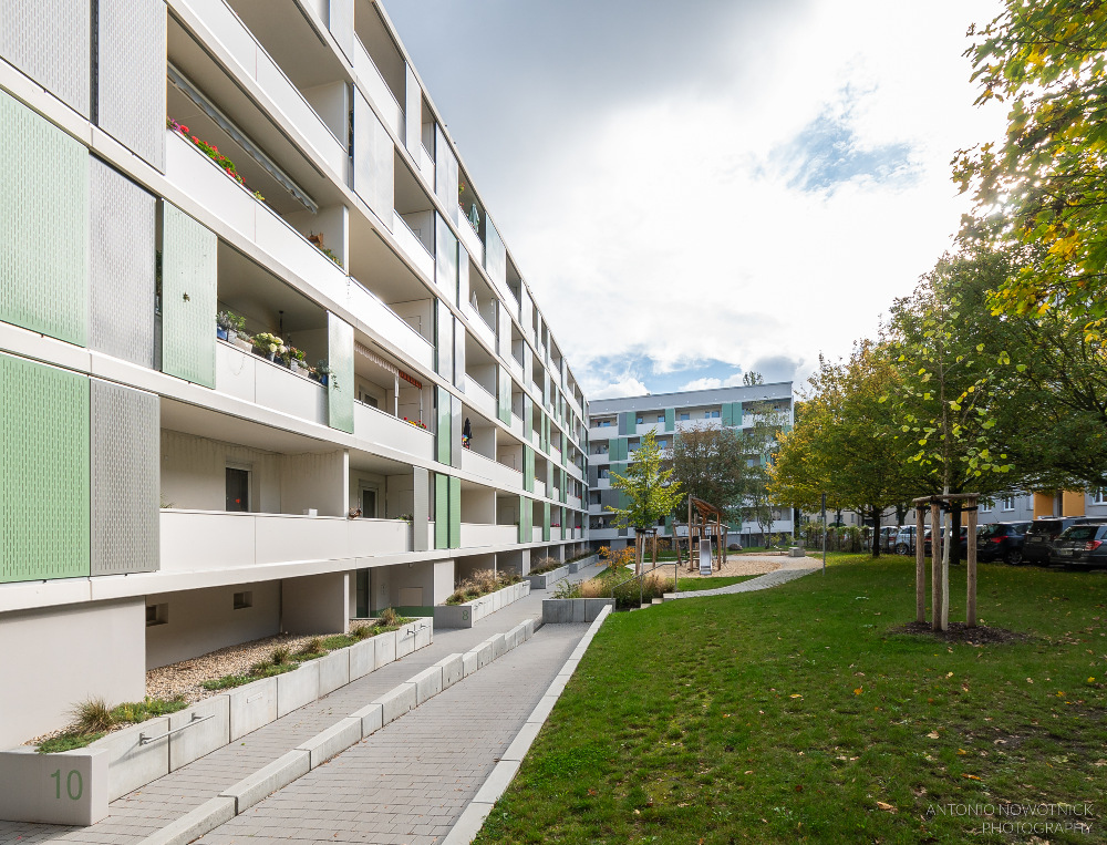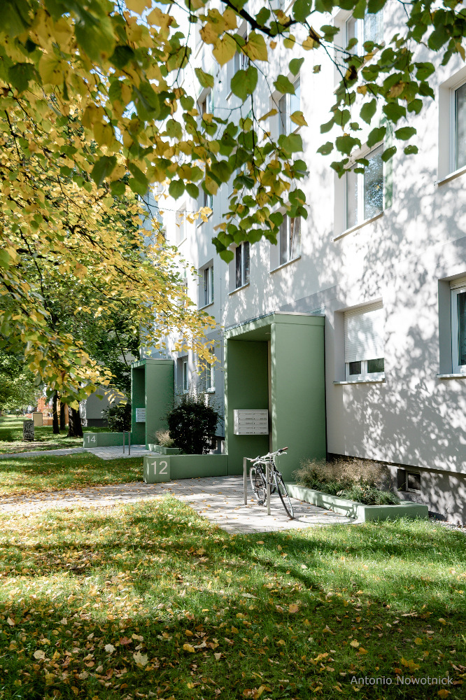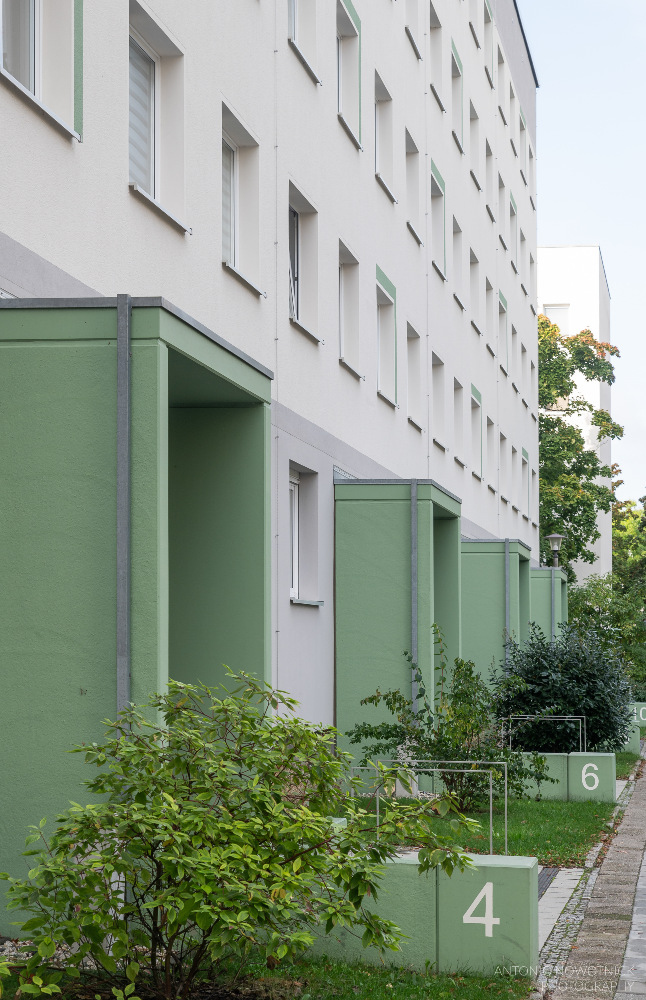 In der Enderstraße 2-42 werden Plattenbauten zukunftsfähig gemacht. Durch das Absenken des Eingangsniveaus auf der Hofseite und den Einbau von 21 neuen Aufzügen werden alle Wohnungen barrierefrei erreichbar. Hiermit sinnvoll verbunden wird eine aufwertende Umgestaltung der Freianlagen der Innenhöfe realisiert. Der Komfort für die Mieter erhöht sich durch den Neubau großer Balkonanlagen mit modernen Schiebeläden und Abstellbereichen. Abgerundet wird die Modernisierung durch neue Eingangsbereiche auf der Straßenseite.