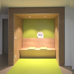 Die grüne Umgebung des Gebäudes wurde aufgegriffen und so der Bezug vom Außenraum zum Innenraum hergestellt. An der Fassade des neuen Anbaus dominieren Holz-Töne und dezente Fensterfarben. Hauptgestaltungsmotiv im Innenbereich ist eine sehr klare Basisgestaltung aus warmen Grautönen, Holzoberflächen und je einer Akzentfarbe pro Etage. Die Farbtöne wurden aus dem Bereich Natur gewählt (kraftvolles Waldgrün, dezentes Wiesengrün, Sanddünen und Sonnengelb). Jedem Farbton sind Assoziationen zugeordnet, in Wort und Schrift oder grafisch als Motivdarstellung. Dies dient der optischen Orientierung und der Hervorhebung von Sonderbereichen wie Empfang, Konferenzraum, Teeküchen, Besprechungsräumen und Wartenischen. Die Sonderbereiche werden zusätzlich akzentuiert ausgeleuchtet.