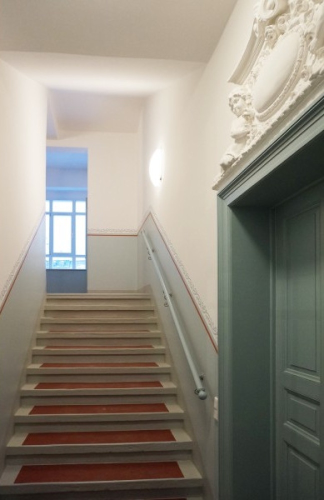 Das Gebäude wurde denkmalgerecht saniert. Am Treppenhaus wurde ein Aufzug integriert und im Hof zwei Balkontürme errichtet. Der Trockenboden wurde zur Wohnung umkonzipiert. Im rückwärtigen Teil des Grundstückes entstand ein modernes Einfamilienhaus mit zwei Wohnetagen.