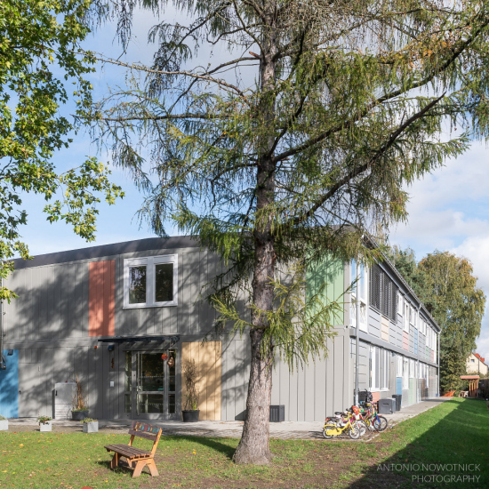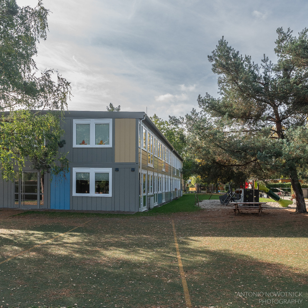Die Interimskita wurde in nur 14 Wochen in Zusammenarbeit mit dem Containerhersteller FAGSI auf dem Kitagelände erbaut und wird seit Januar 2023 von über 100 Kindern und einem Team von 13 Pädagogen genutzt. Die Planung und Umsetzung erfolgte in enger Zusammenarbeit mit dem Bauherren und den zukünftigen Nutzern, um alle Bedürfnisse und Ziele der pädagogischen Arbeit sowie des Auftraggebers zu berücksichtigen.