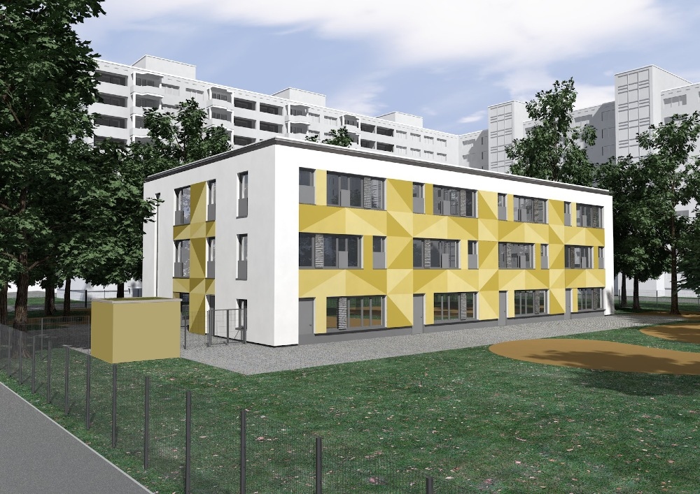 Die Kindertageseinrichtungen Michelangelostraße 5, Herzberger Straße 31, Hopfgartenstraße 9 und Fabricestraße 7a werden als Neubau in Systembauweise (Holztafelbau) in Dresden ausgeführt. Dazu wurde ein Grund-Typenprojekt entworfen, welches mit gleichen Grundrissen, jedoch unterschiedlichen Fassaden, an mehreren Standorten realisiert werden soll. Die Kinder können sich in diesem Zuge neben einem großen Haupthaus auf eine differenzierte Spielfläche und zwei Gerätehäuser freuen. Für das betreuende Personal sind zudem sieben Stellplätze vorgesehen.