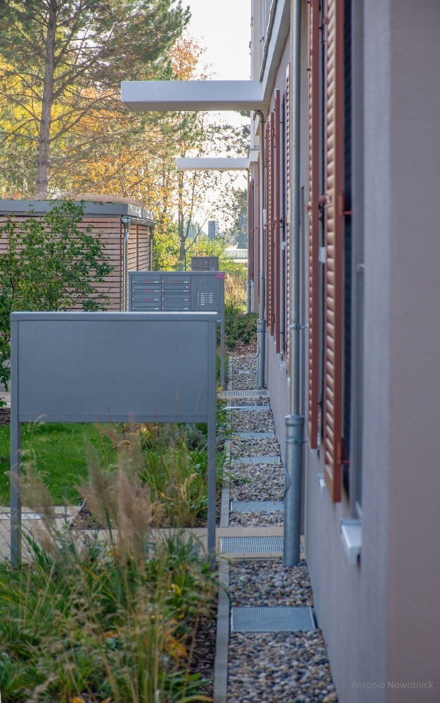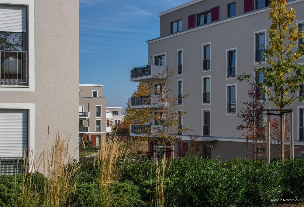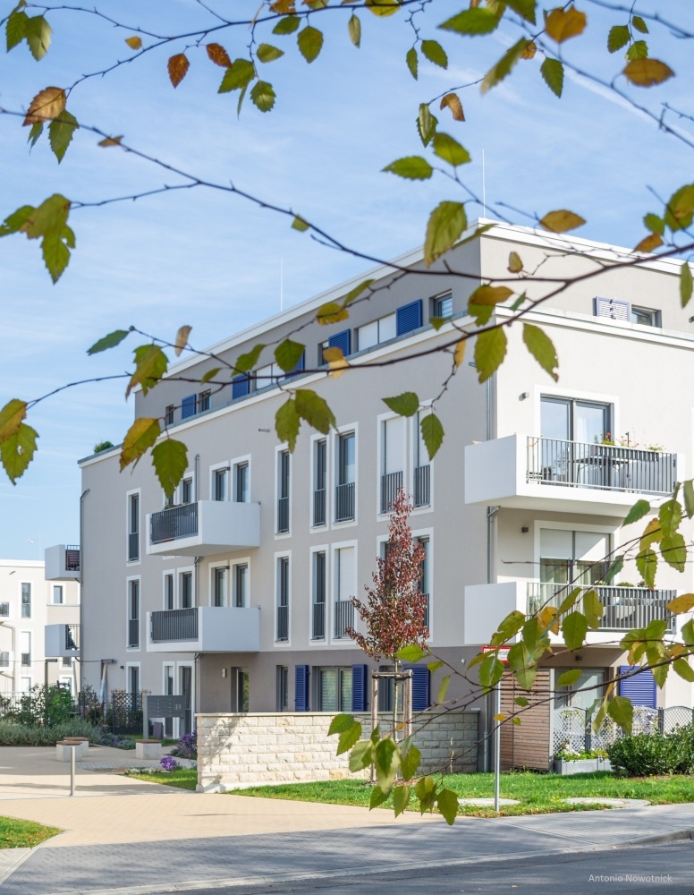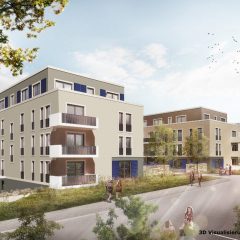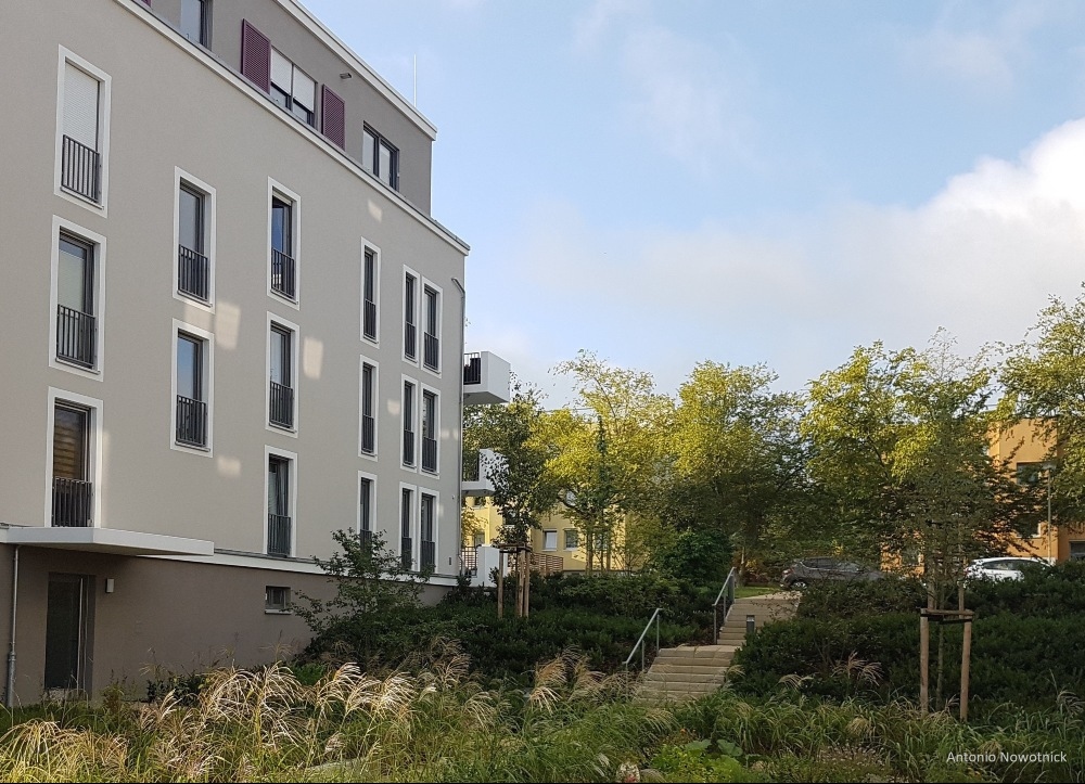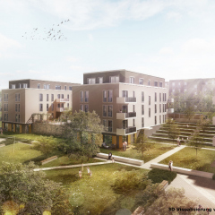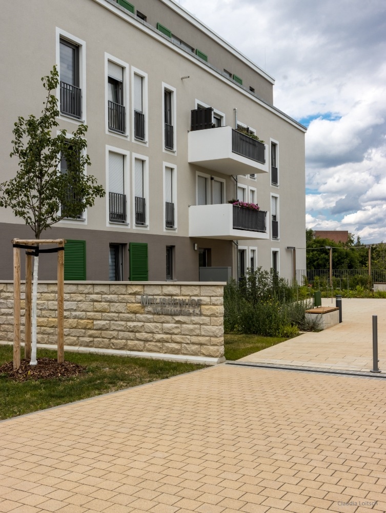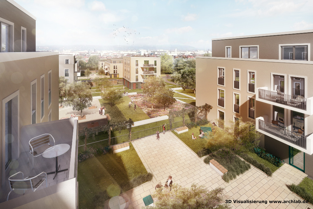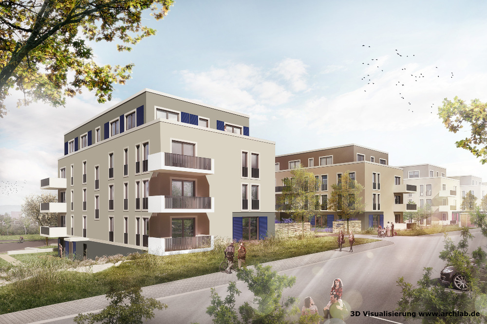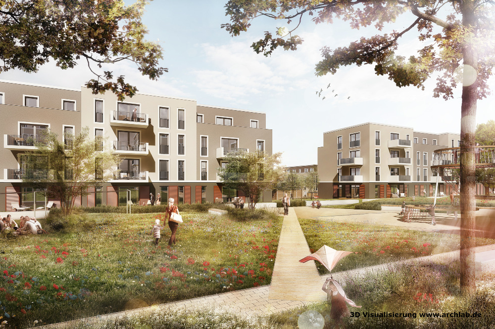 Der größte Teil der Wohnungen wird barrierefrei erreichbar sein. Alle Erdgeschosswohnungen erhalten einen Mietergarten. Zwischen den Gebäuden entsteht eine großzügig gestaltete Außenanlage.