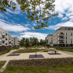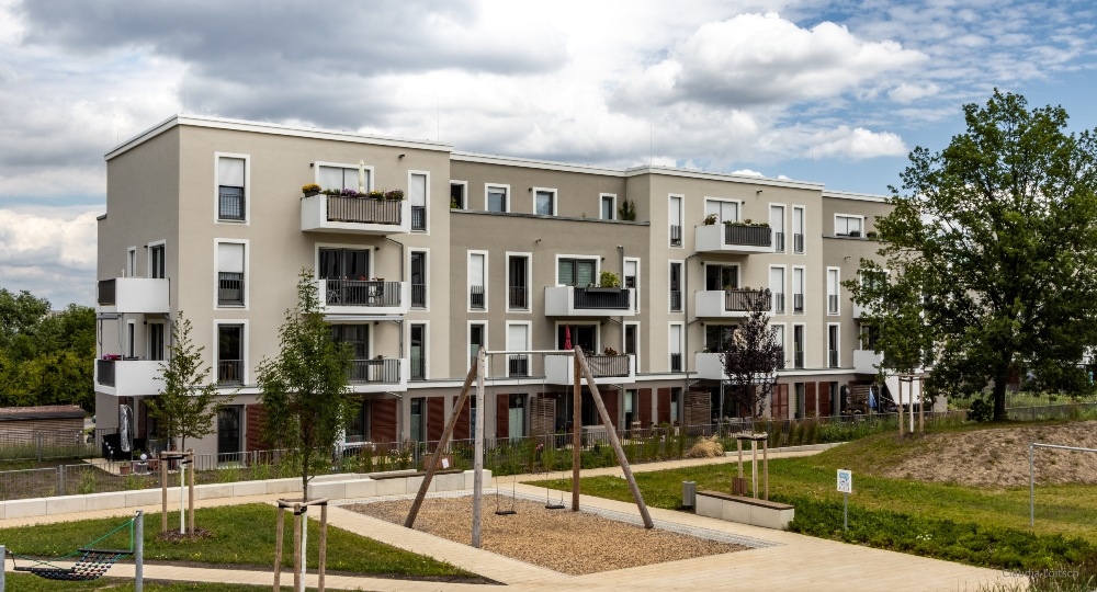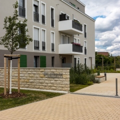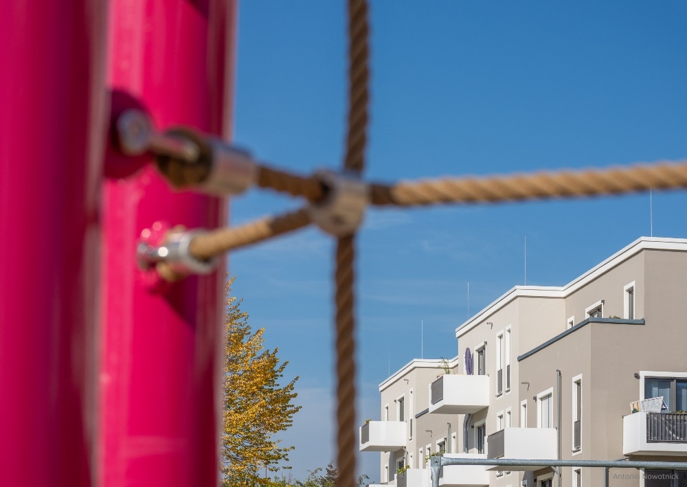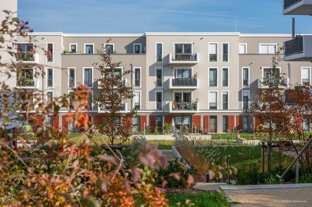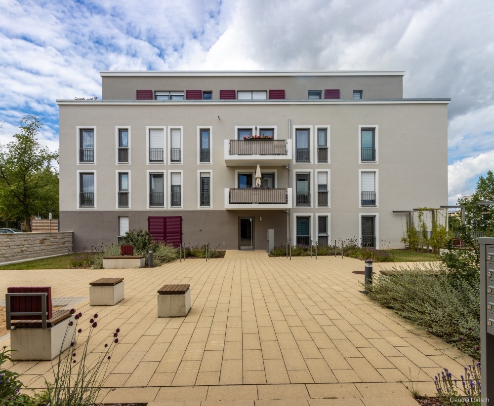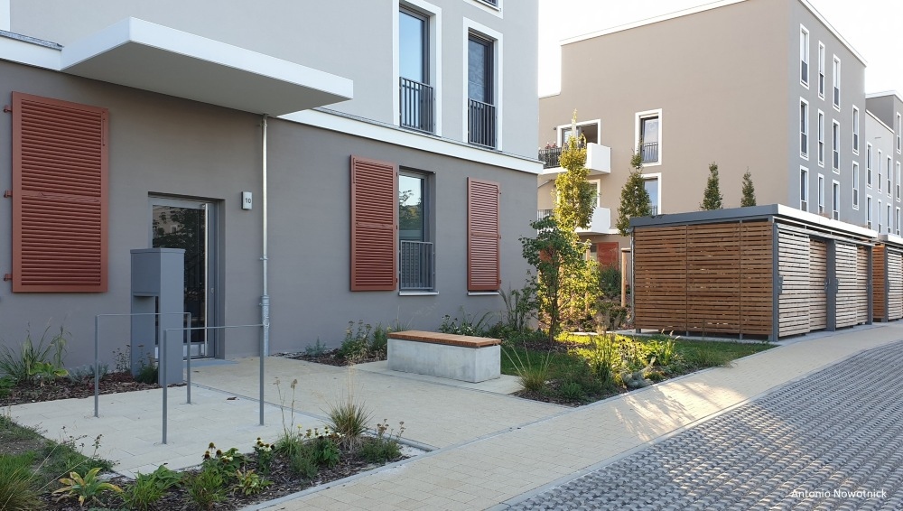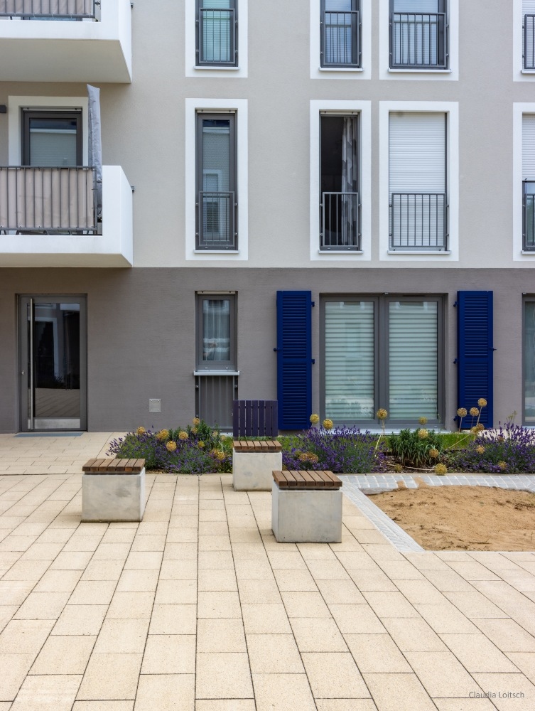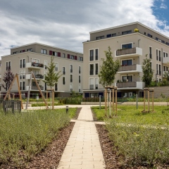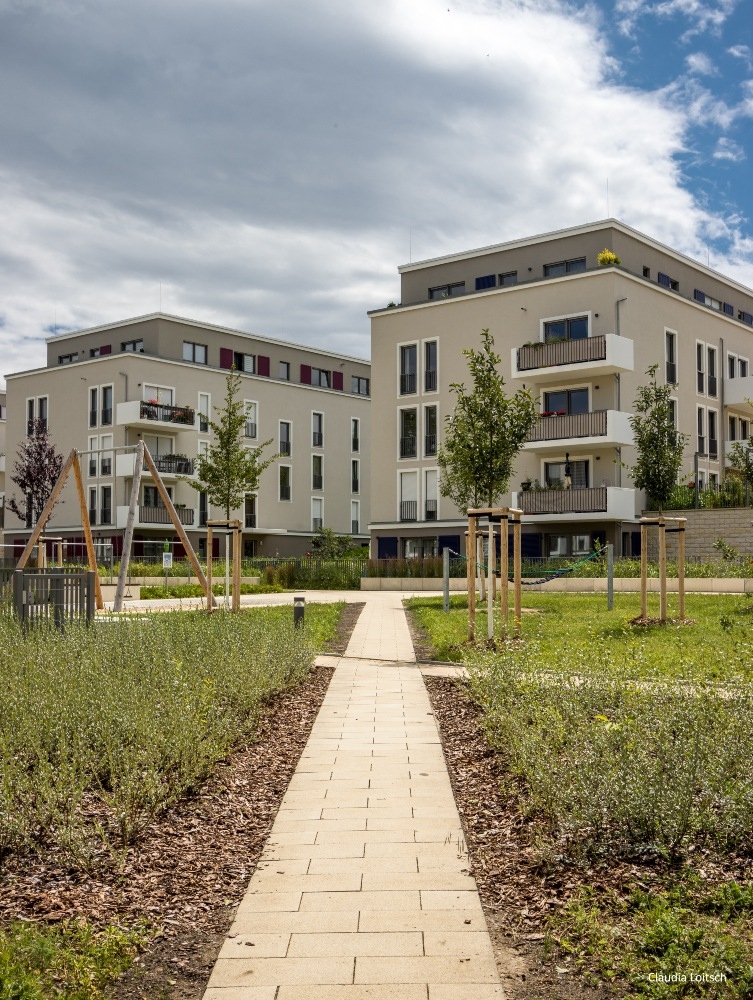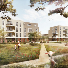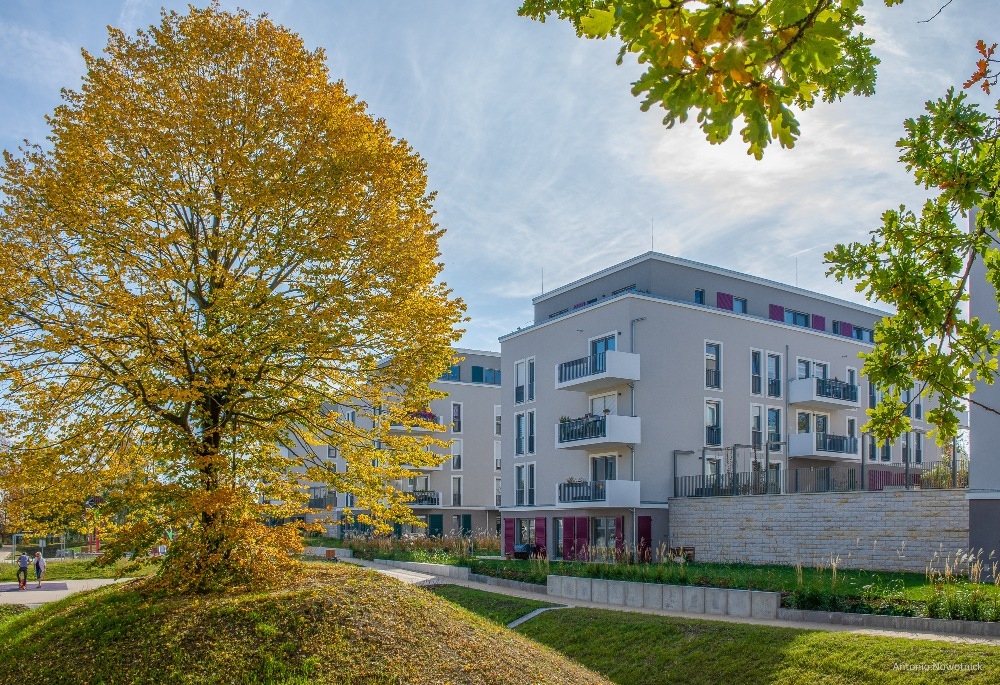 Der größte Teil der Wohnungen wird barrierefrei erreichbar sein. Alle Erdgeschosswohnungen erhalten einen Mietergarten. Zwischen den Gebäuden entsteht eine großzügig gestaltete Außenanlage.