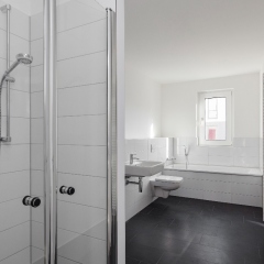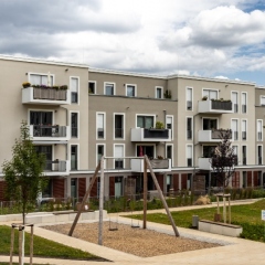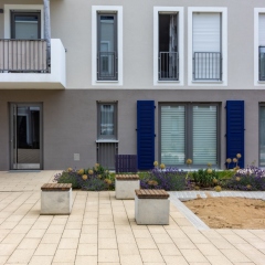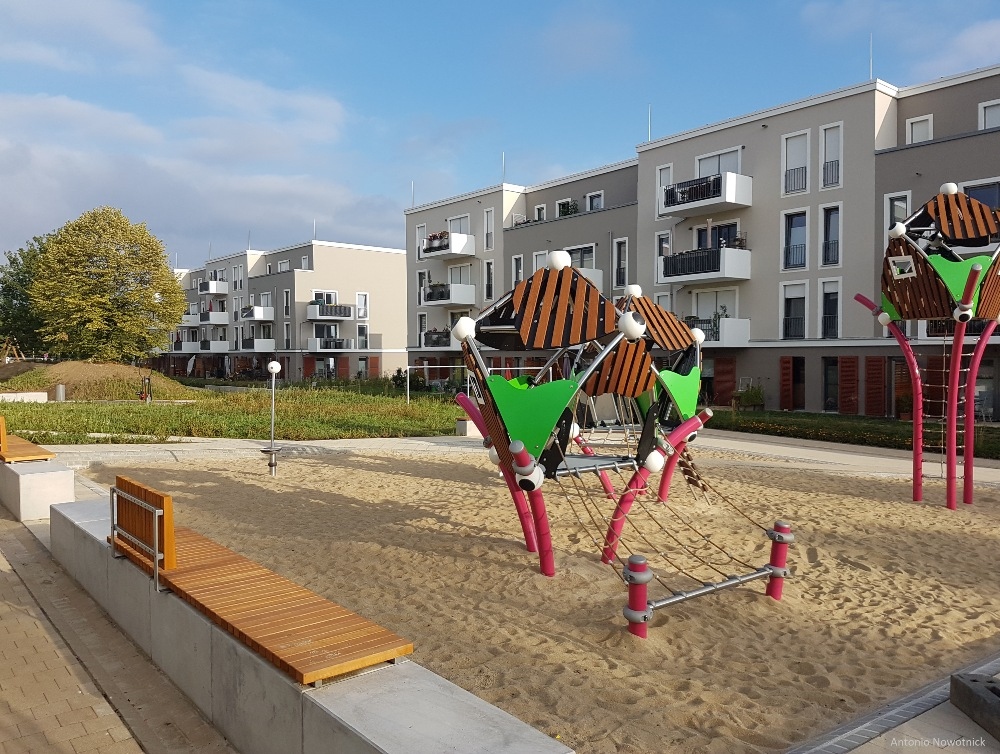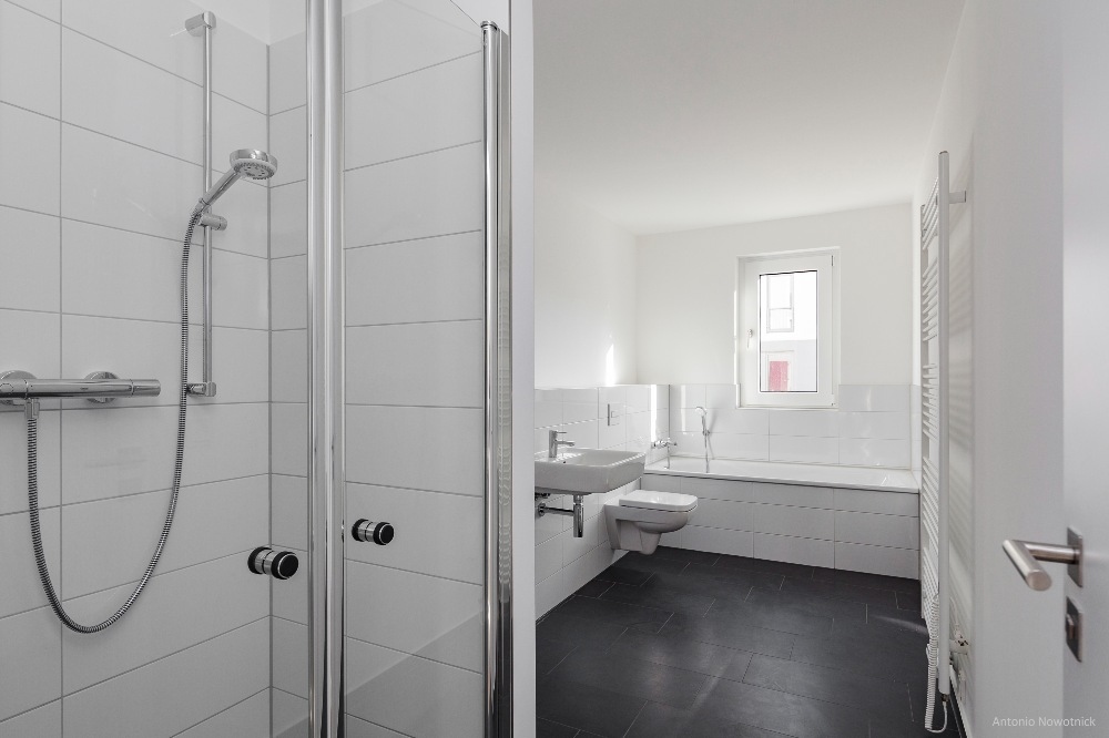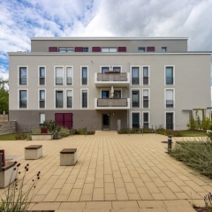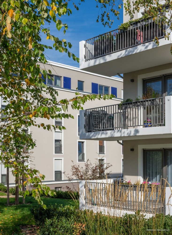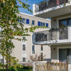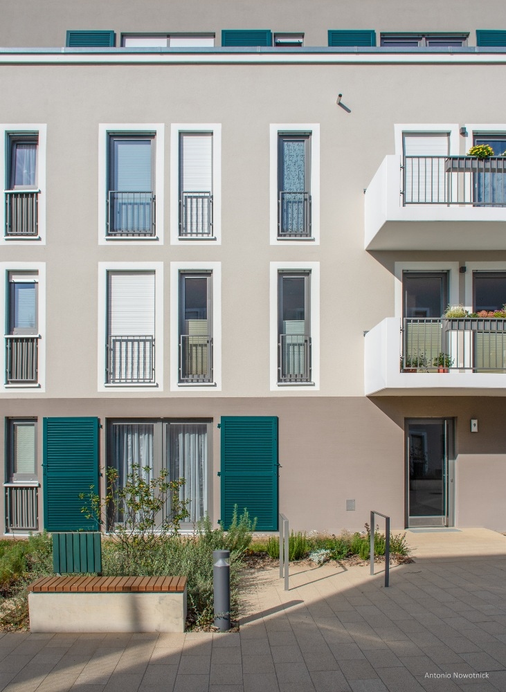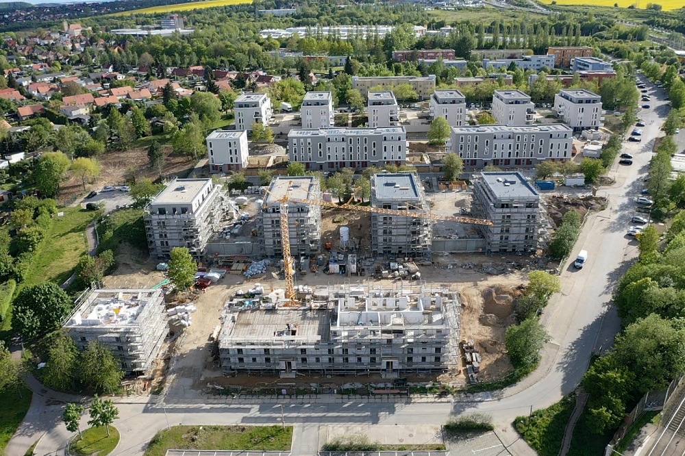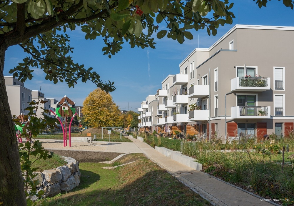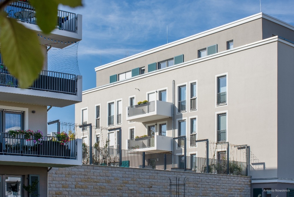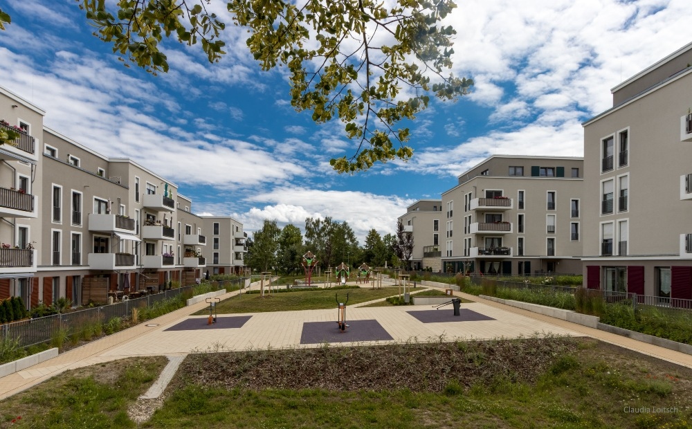 Der größte Teil der Wohnungen wird barrierefrei erreichbar sein. Alle Erdgeschosswohnungen erhalten einen Mietergarten. Zwischen den Gebäuden entsteht eine großzügig gestaltete Außenanlage.