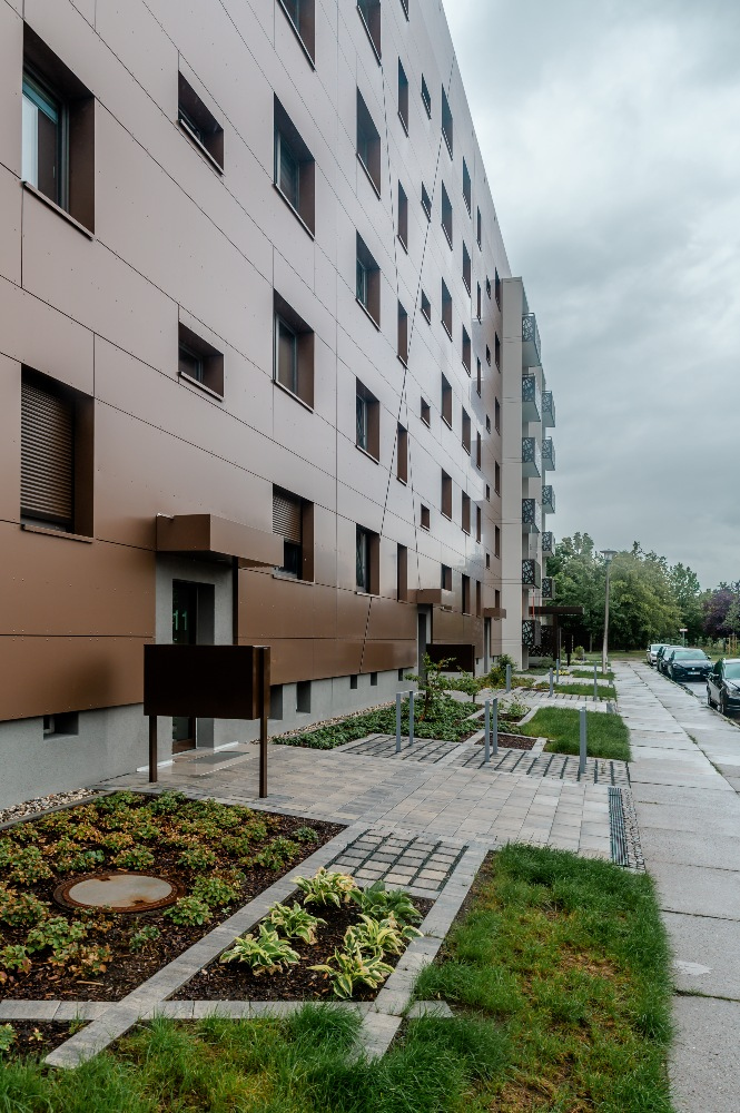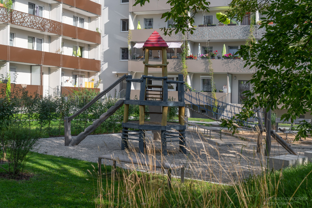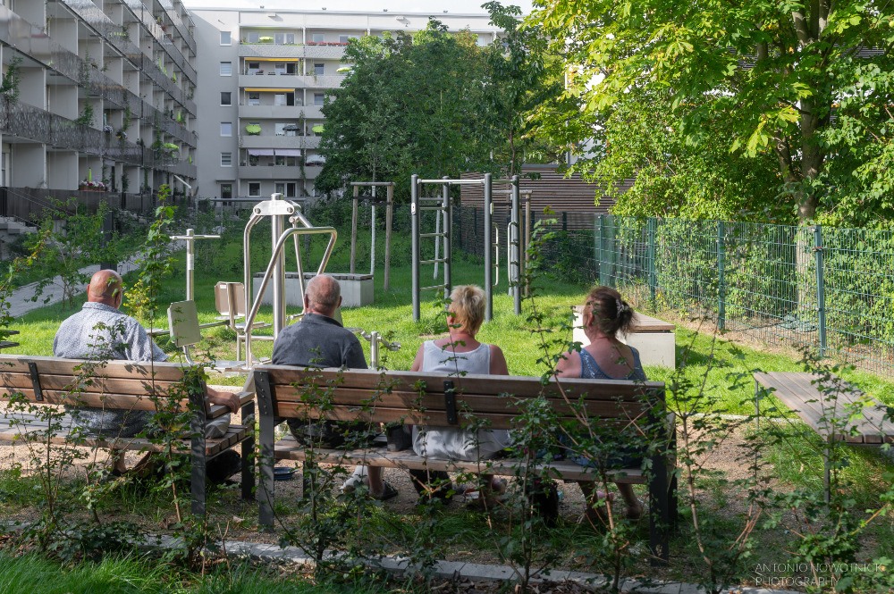 Das Wohngebiet an der Lommatzscher Straße erfährt durch die Neugestaltung eine Aufwertung vom grauen Plattenbaugebiet zum attraktiven Wohnquartier, wobei der Fokus bei der Planung besonders auf der Integration unterschiedlicher Haushaltsgrößen und Altersgruppen sowie ökologischer Aspekte und auf der Schaffung eines nachhaltigen Lebensraumes lag.