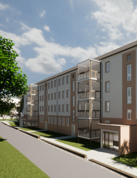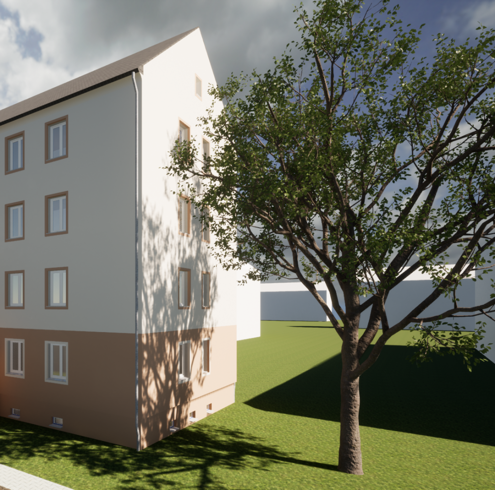 Im Bestand handelt es sich hier um ein 4-geschossiges Wohngebäude, welches ursprünglich im Jahr 1961 in Ziegelgroßblockbauweise errichtet wurde. Nun soll dieses saniert und an die GEG-bestimmungen angepasst werden.