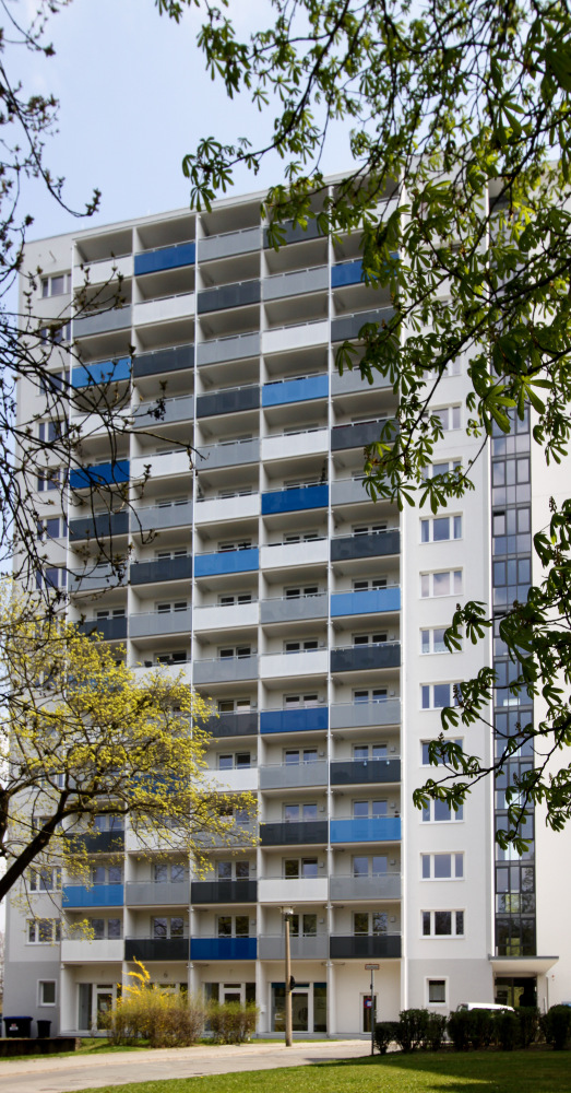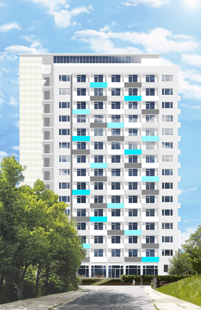 Das Wohnhochhaus der Promenadenstraße in Chemnitz wurde komplett saniert und erhielt eine neu gestaltete Fassade. Durch Grundrissänderungen entstanden aus den vorhandenen Einraumwohnungen auch Zwei- und Dreiraumwohnungen mit einem Blick über die Innenstadt bzw. über den Schlossteich. Über eine neue Aufzugsanlage, welche mit einem ebenerdigen Zugang von außen umgesetzt wurde, ist es jetzt auch möglich, barrierefrei in die einzelnen Wohnetagen zu gelangen.