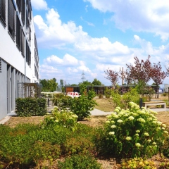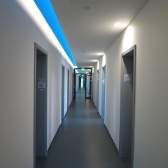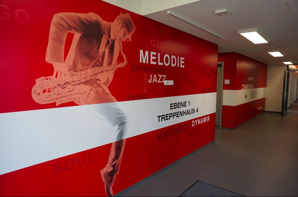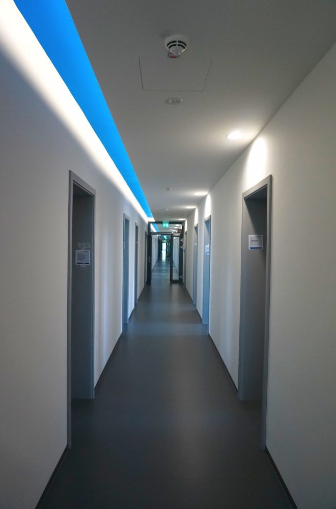 Zusätzlich findet sich in dem neuen Gebäude Platz für 52 neue Büros für über 200 Arbeitsplätze und Labore auf dem neusten Stand der Technik. Ein frisches und buntes Design schafft Freude zum Arbeiten und weckt den Entwicklungsgeist. Das Farbkonzept findet man in jedem Teil des Gebäudes wieder und wurde dort jeweils auf die Bedürfnisse der Mitarbeiter und Kunden genau abgestimmt.