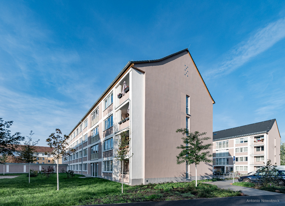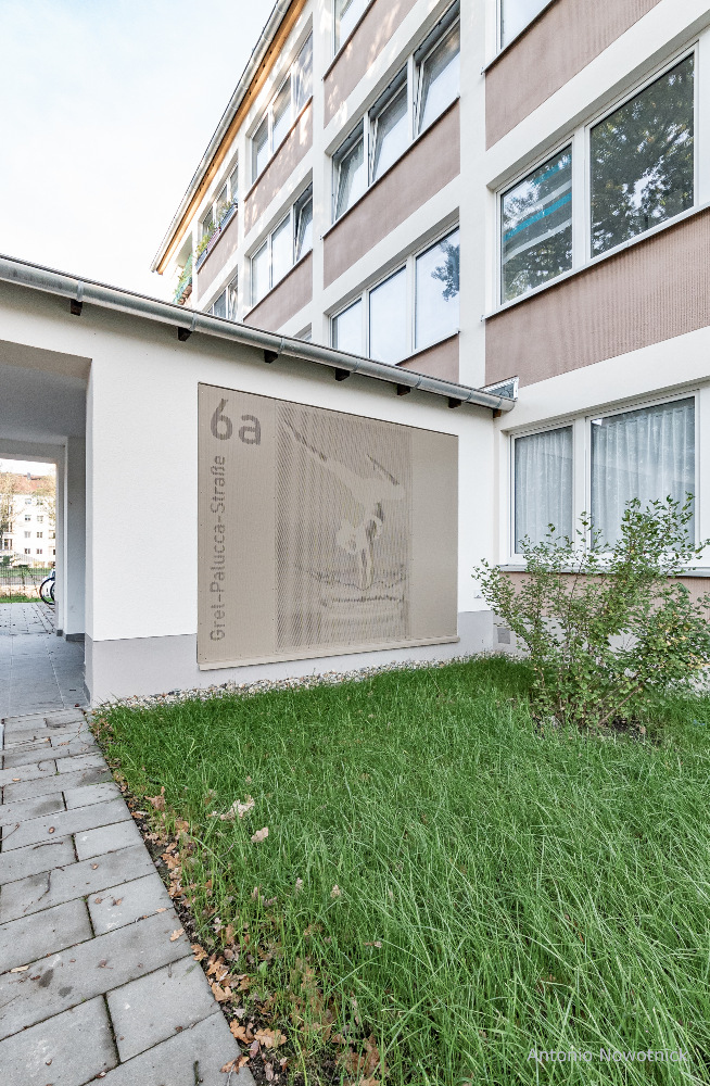 Bei den Gebäuden Gret-Palucca-Straße 2-6 in Dresden handelt es sich um drei viergeschossige, teilunterkellerte Gebäude mit nichtausgebautem Dachgeschoss, welche nun im Auftrag des Bauherren, der WID Wohnen in Dresden GmbH Co. KG vertreten durch die STESAD GmbH, saniert und modernisiert werden.