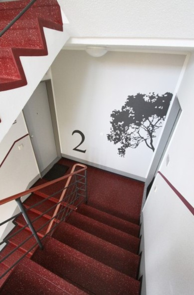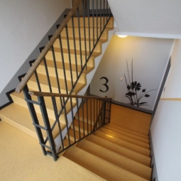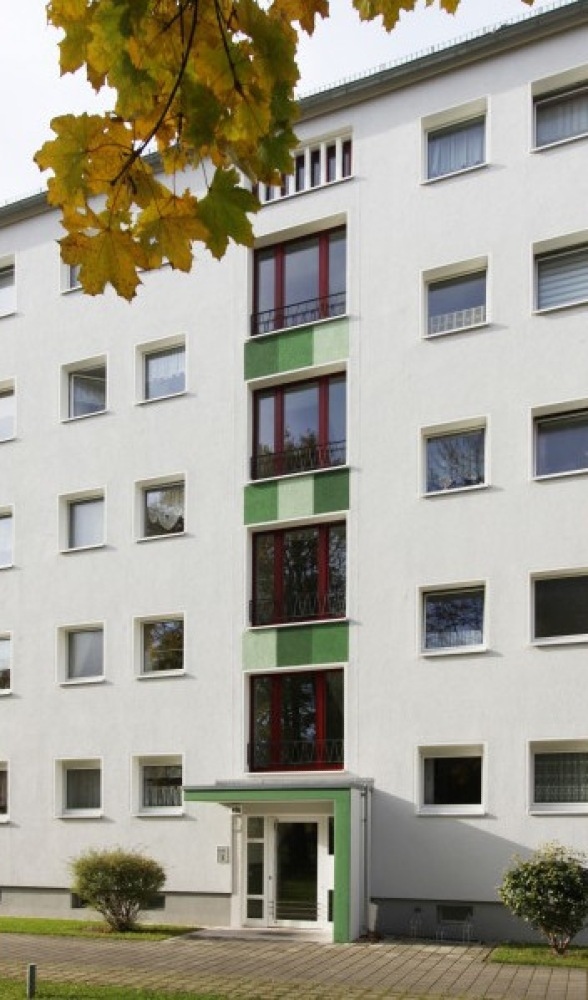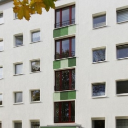 Die vier Gebäude der WG Aufbau wurden einer Frischekur unterzogen. Neben neuen großzügigen Balkonen und Eingangsbereichen wurden auch die Fassaden und Treppenhäuser überarbeitet. Die Freiflächen wurden aufgewertet und erhielten ebenerdige Fahrradgaragen.
