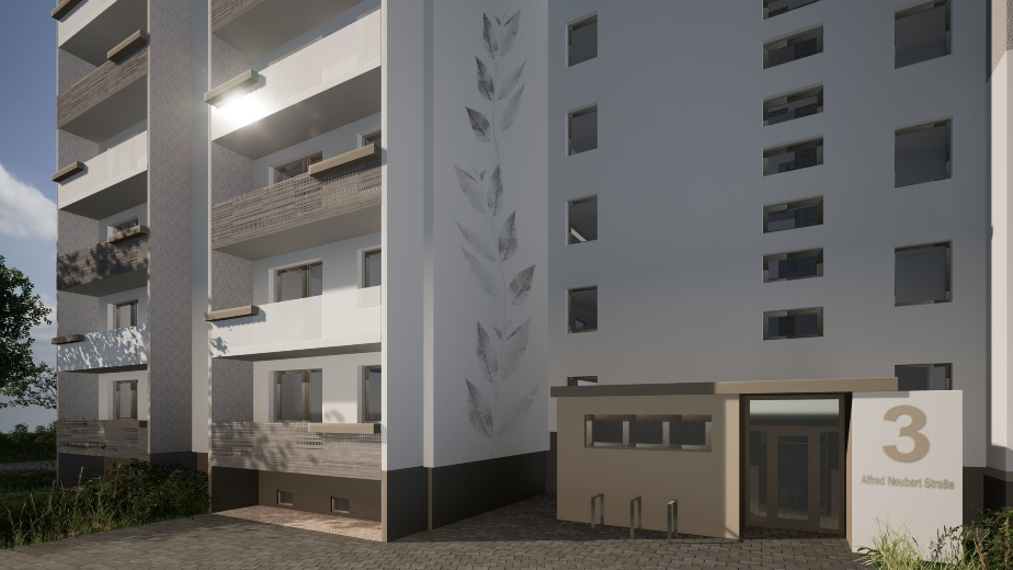 Mit der Alfred-Neubert-Straße 3 in Chemnitz entsteht ein Wohnprojekt, das Bestehendes bewahrt und konsequent in die Zukunft führt. Das Bestandsgebäude wird umfassend modernisiert und zu einem zeitgemäßen Zuhause mit hohem Komfort-, Sicherheits- und Nachhaltigkeitsniveau entwickelt. Ziel ist ein energetischer Standard nach KfW-85 – ein spürbarer Beitrag für ressourcenschonendes, zukunftsfähiges Wohnen. Dazu erhält die Fassade eine leistungsfähige Mineralwolldämmung; neue Fenster mit Dreifachverglasung verbessern den Wärmeschutz deutlich, und auch Dach sowie Geschossdecken werden energetisch ertüchtigt. Gestalterisch wird die Gebäudehülle mit einer klar gegliederten, ruhigen Fassadengestaltung und durchlaufenden Balkonbändern neu geordnet und erhält so ein zeitgemäßes Erscheinungsbild. Bestehende Balkone werden saniert und mit neuen Brüstungen ausgestattet, Wohnungen ohne Balkon erhalten erstmals großzügige Anstellbalkone.