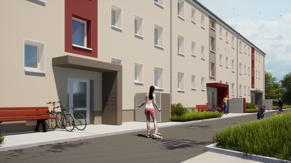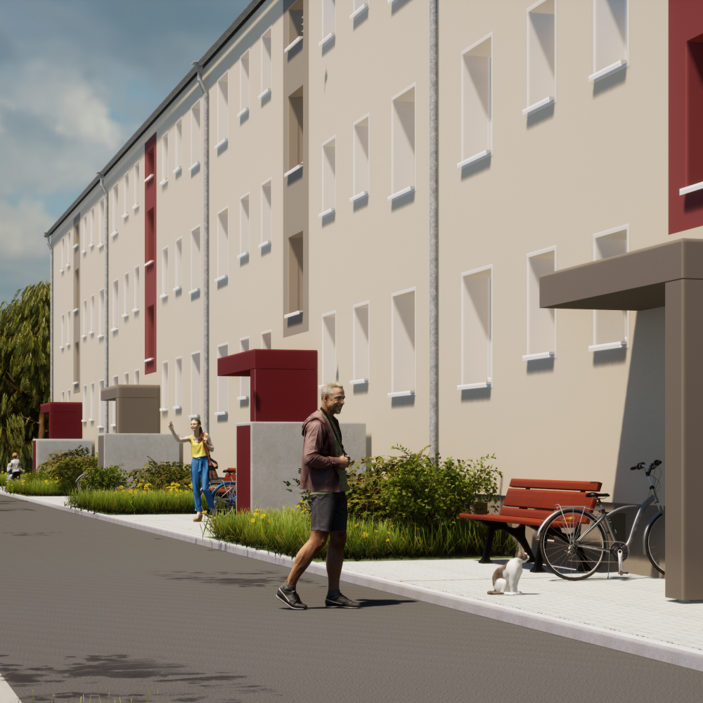 Zentrales Element des Energiekonzepts ist die neue Heizungsanlage im Kellergeschoss, unterstützt durch Geothermie und Solarthermie. Parallel werden die Waschräume modernisiert, Fassade und Dach energetisch ertüchtigt und die Bohrungen für die Geothermieanlage umgesetzt. Mit dem zweiten Bauabschnitt ab Februar 2026 wird die Sanierung des Gesamtgebäudes abgeschlossen und ein deutlich energieeffizienteres Mehrfamilienhaus mit verbessertem Raumklima und zeitgemäßer Haustechnik bereitgestellt.