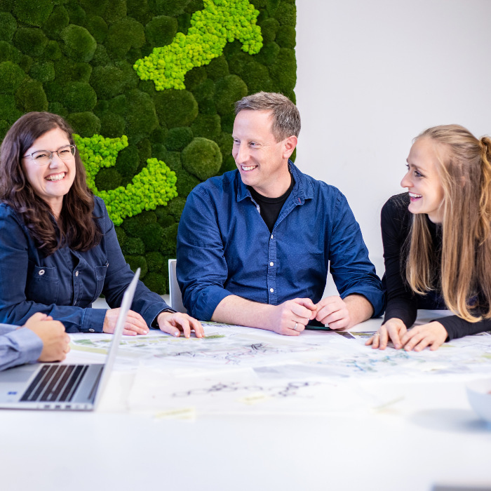 - Wir schaffen moderne Arbeitsbedingungen, z.B. durch helle Büroräume, aktuelle Büroausstattung, viele Kommunikationsbereiche oder eine zentrale Küche als Treffpunkt